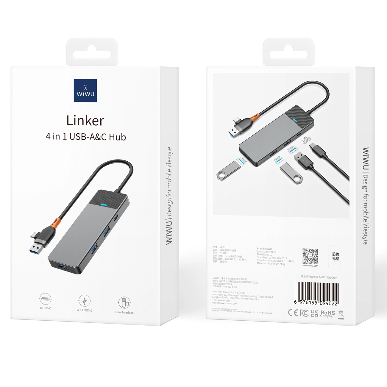 WiWU A431C Linker 4-in-1 USB-C & Type C Hub