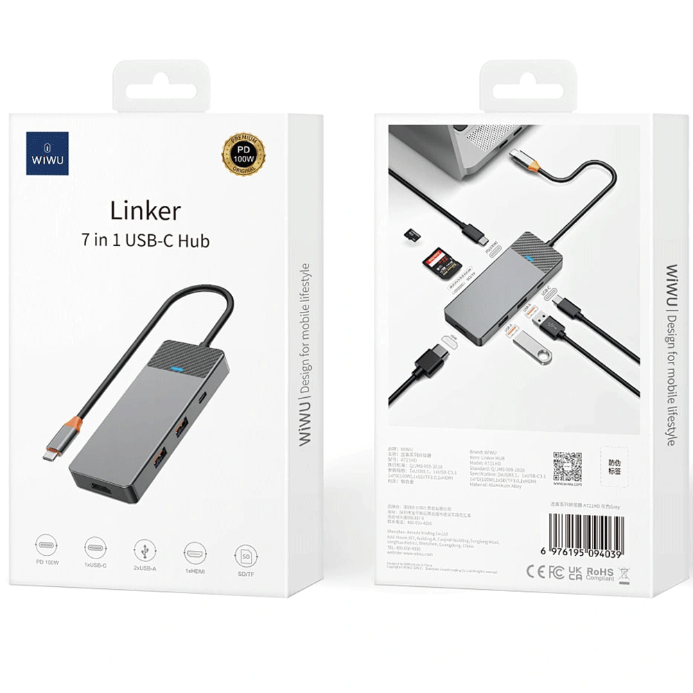 WiWu A721HD 7-in-1 Linker Series Hub Gray