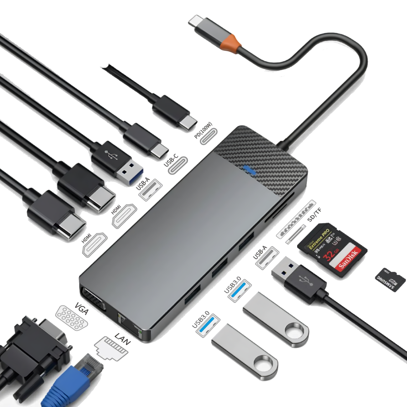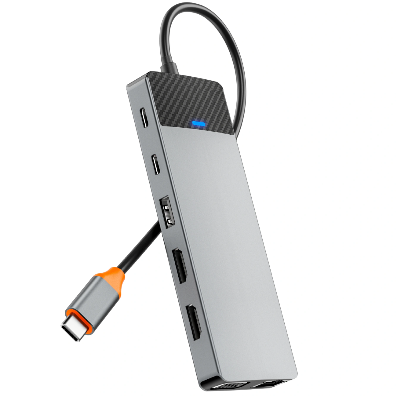 | نوع درگاهها | USB3.0*2 + USB2.0*2 +USB-C PD + USB-C Data + RJ45 + HDMI*2 + VGA + SD/TF |