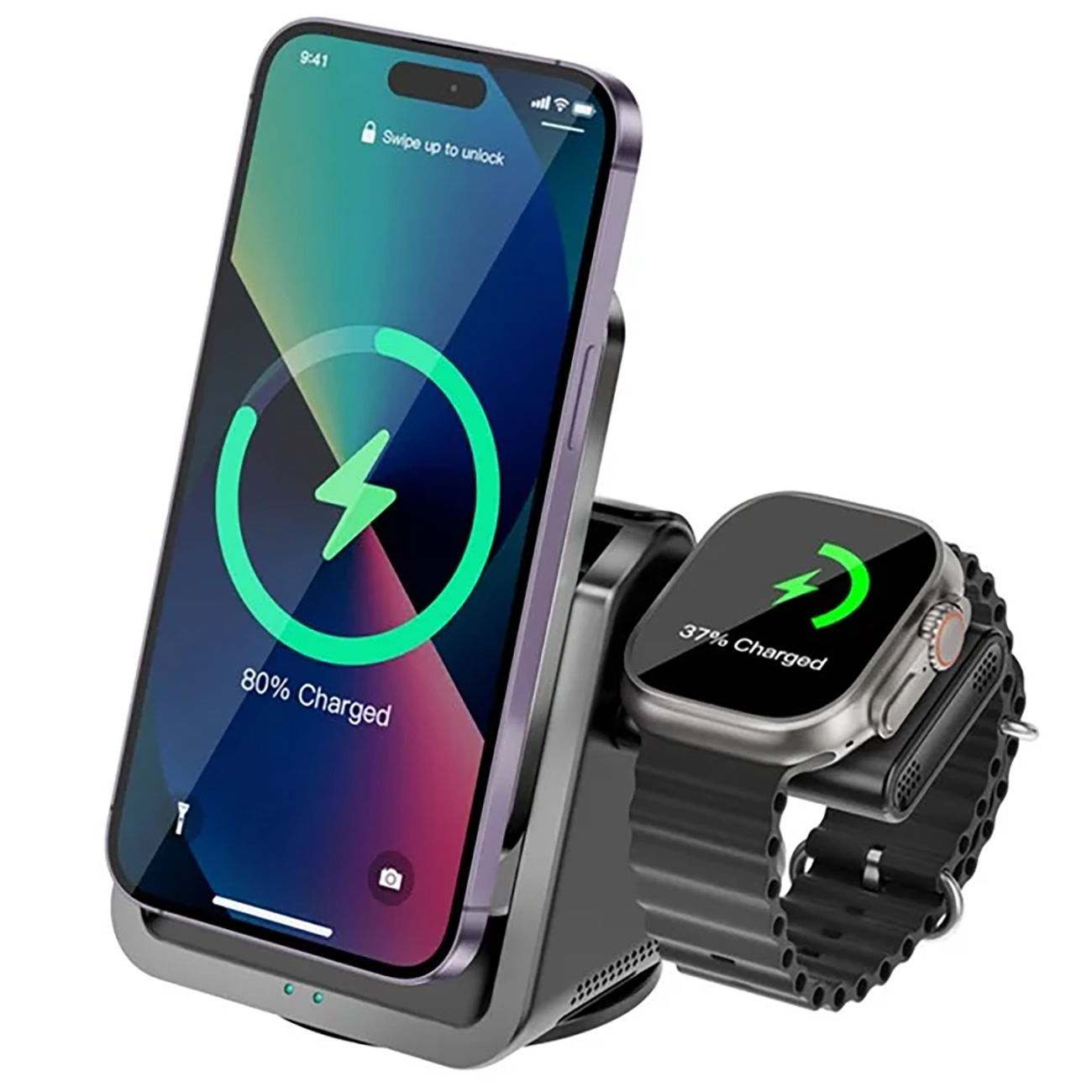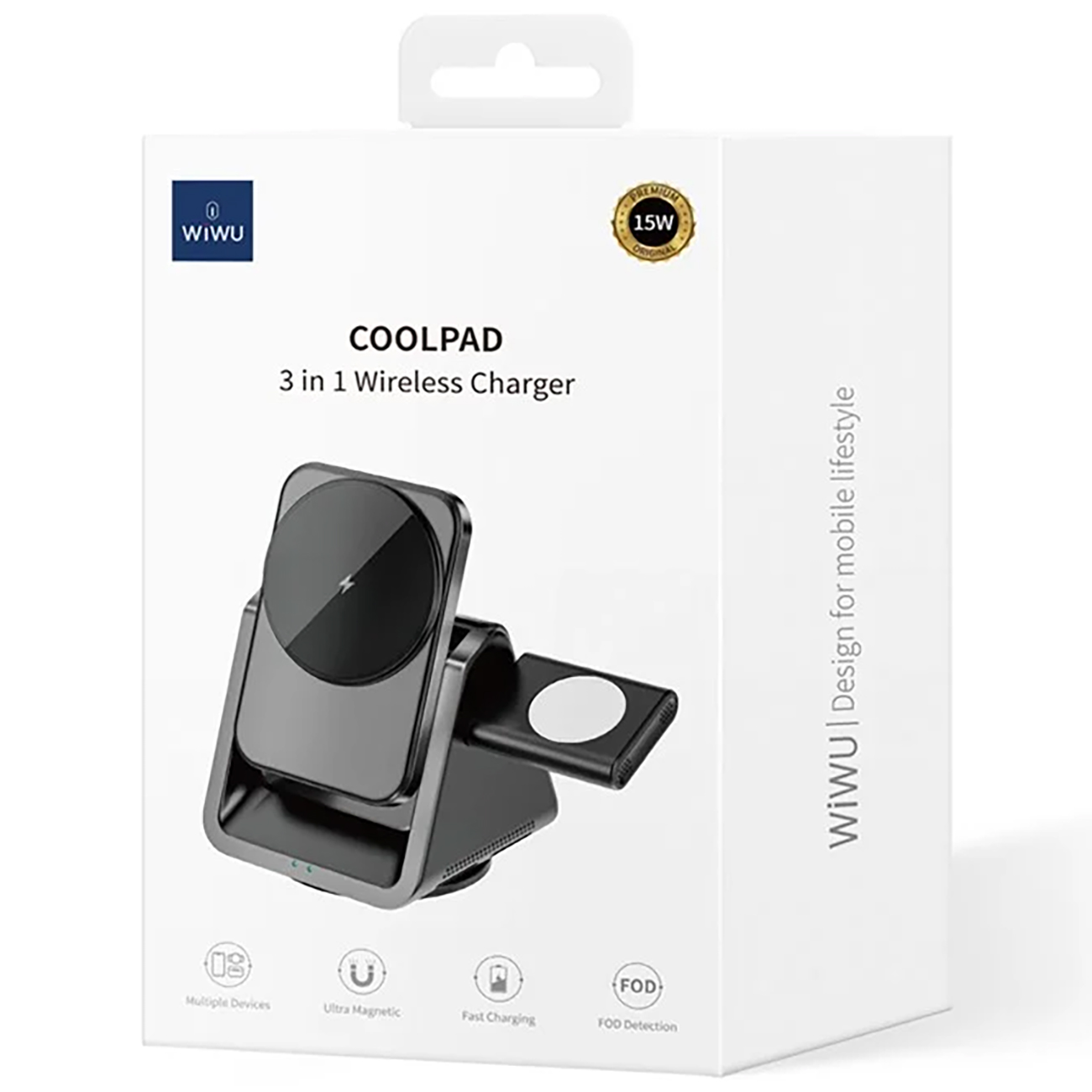 شارژر بی سیم رومیزی 15 وات گوشی، ایربادز و اپلواچ ویوو Wi-W018