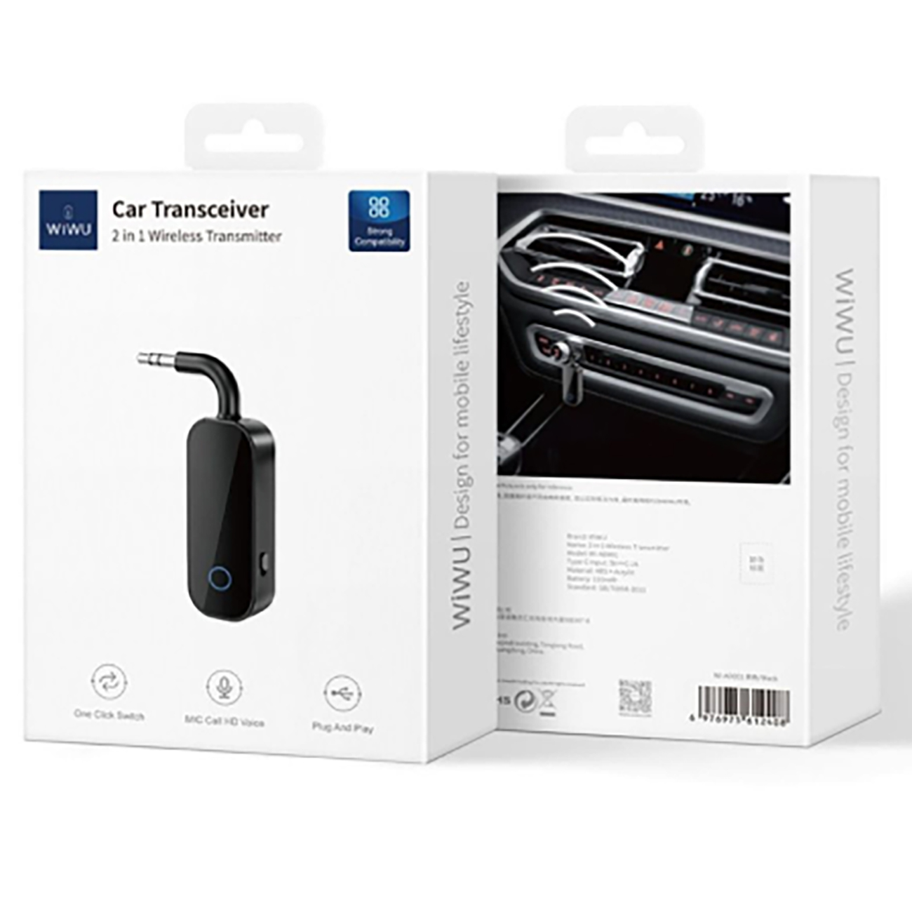 WiWU Wi-AD001 BT 5.0 Transmitter and Receiver 2 in 1 Wireless 3.5mm