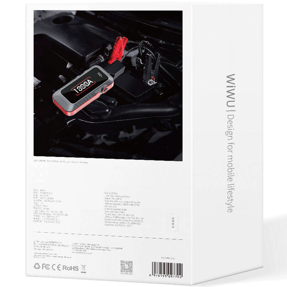 Wiwu Wi-JS001 LED Light Car Battery Emergency Booster Power Supply Powerbank 12V 37W 10000mAh