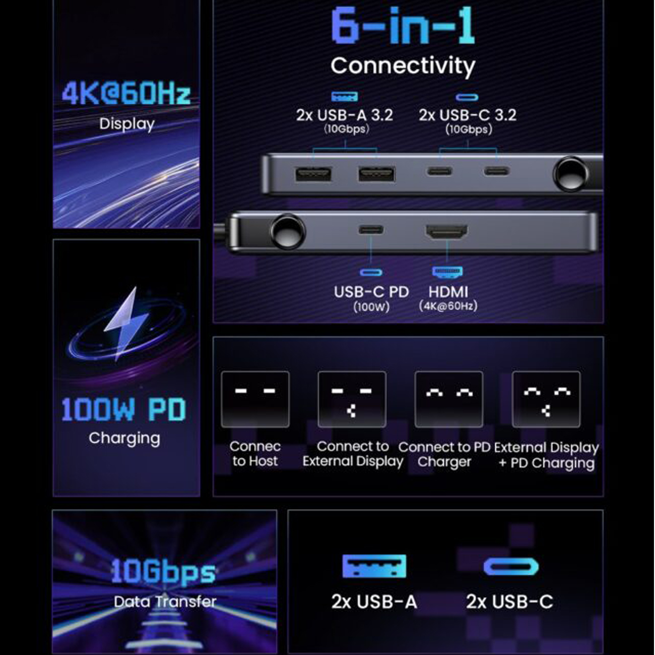 UGREEN Uno 6 in 1 USB3.0 Hub 4K 60Hz USB-C CM888 35998
