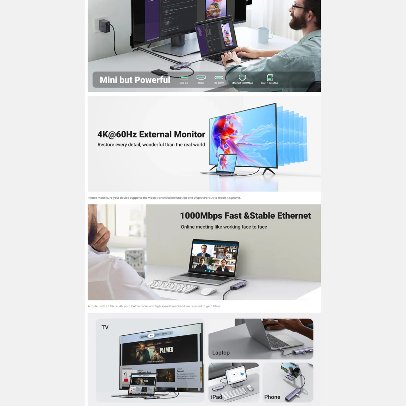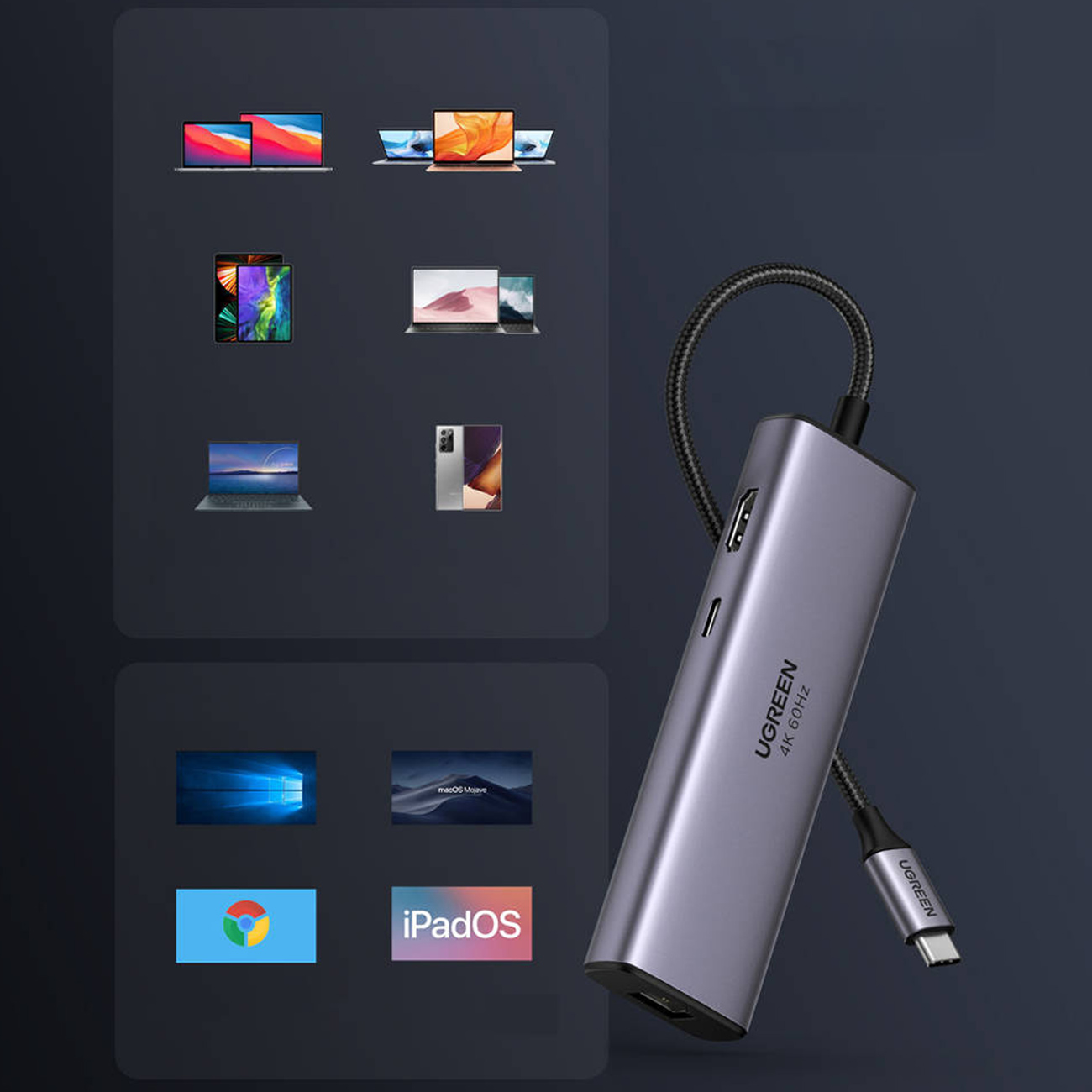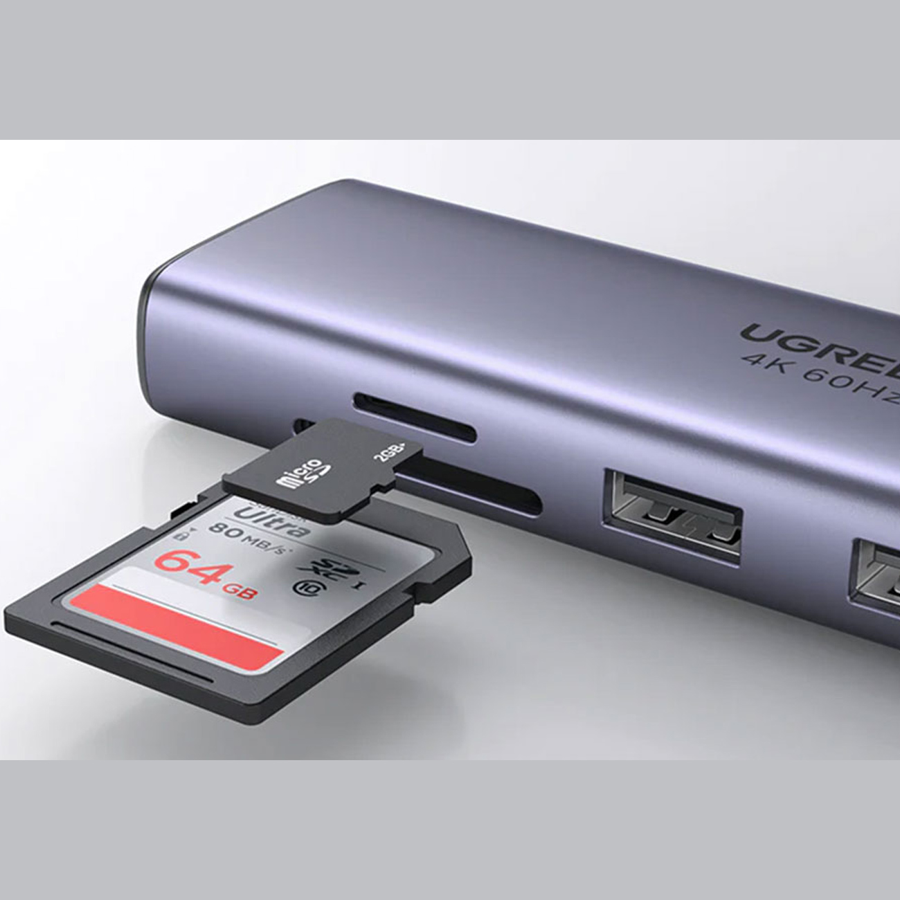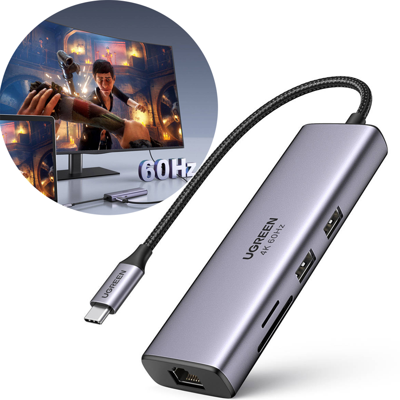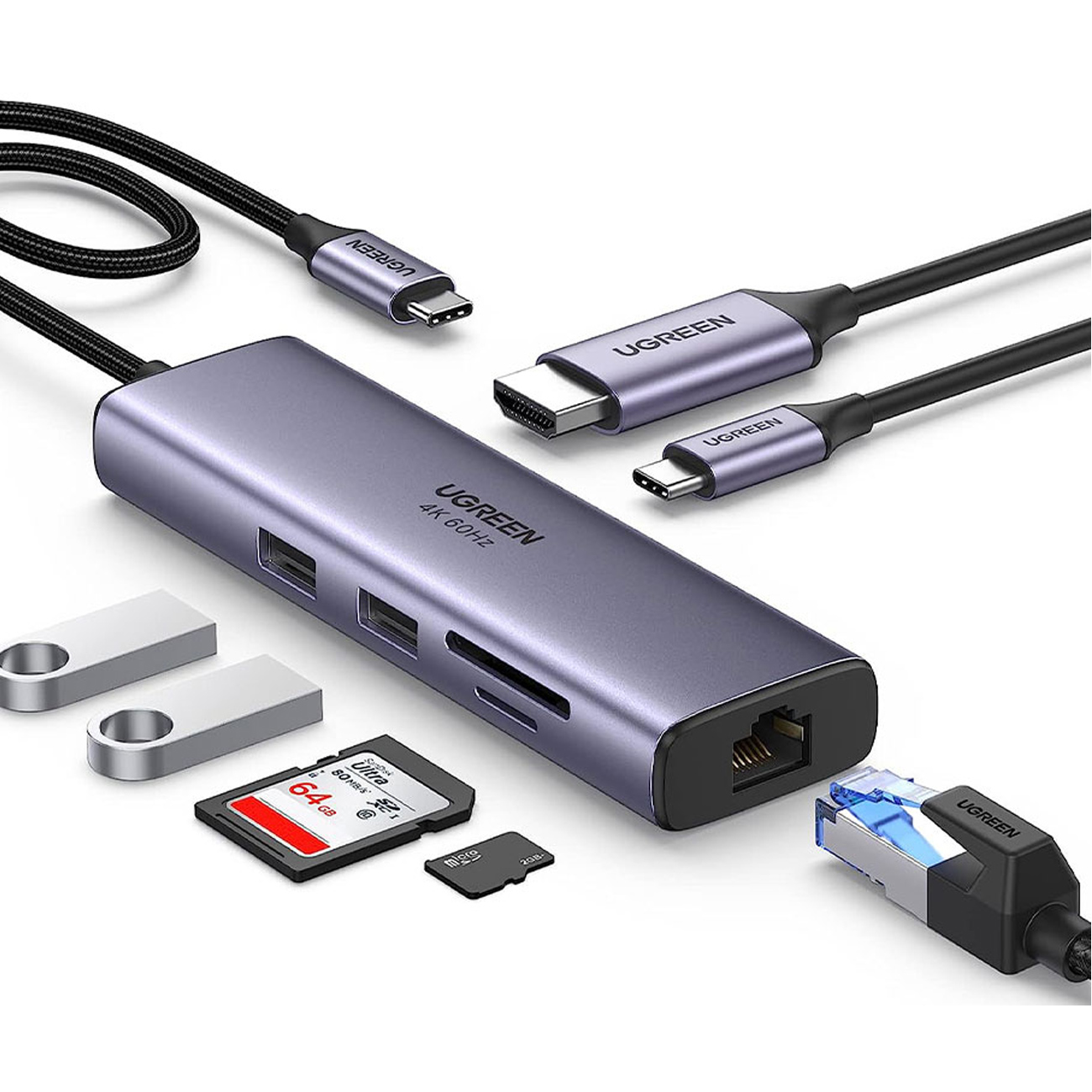 Ugreen CM512 60515 7in1 multi-functional HUB USB Type C - 2x USB 3.2 Gen 1 / HDMI / SD and TF card reader / RJ45