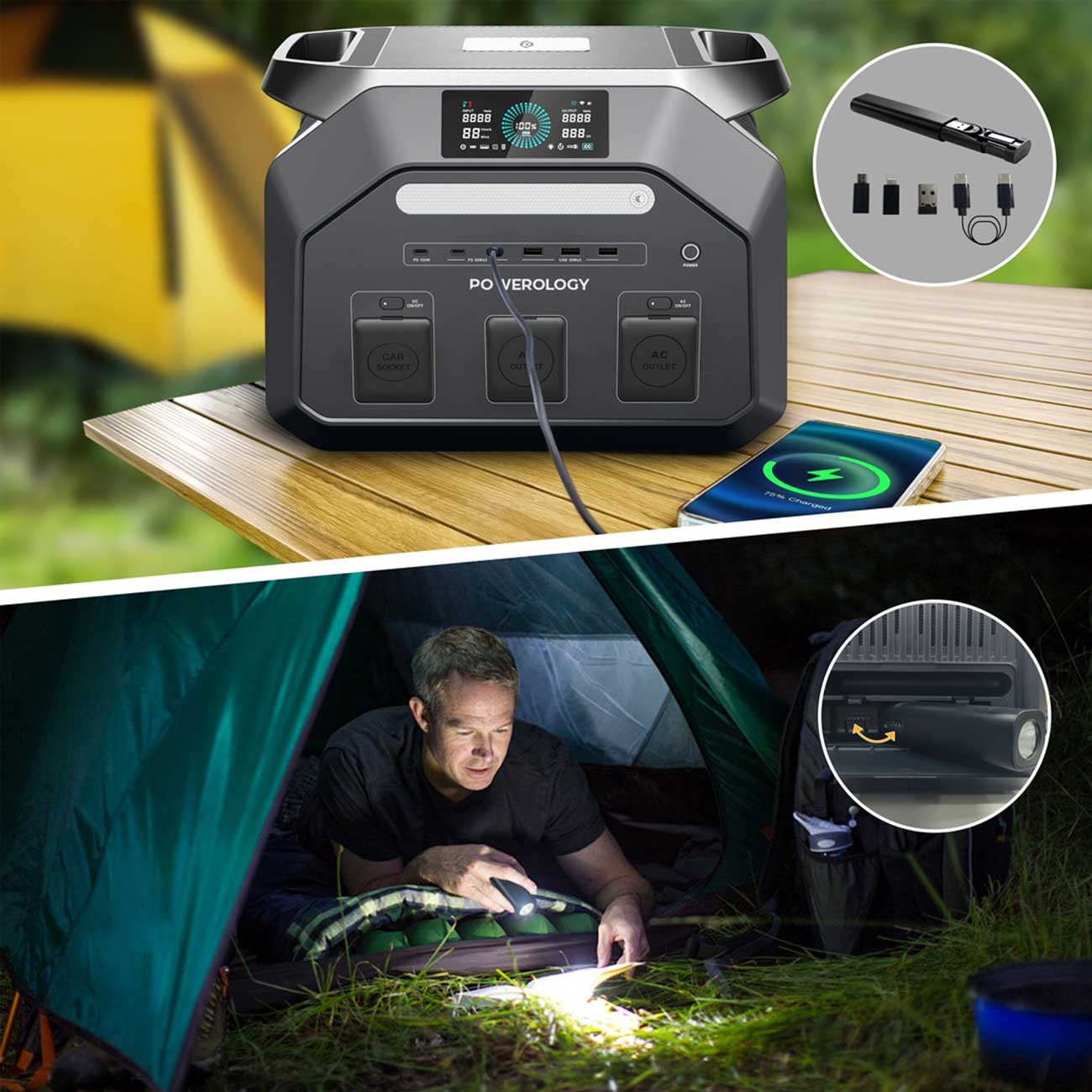 | سازگار با | اکثر دستگاههای مدرن (گوشیهای هوشمند، لپتاپ، ابزارهای برقی، تجهیزات پزشکی مانند CPAP) و پنلهای خورشیدی |