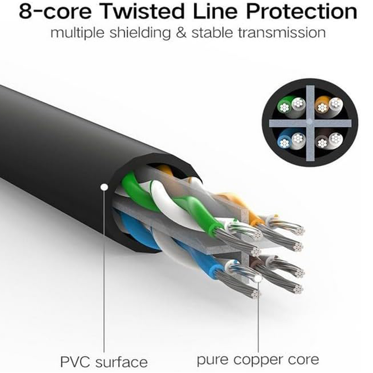 | تعداد هسته | 8 رشته زوج به هم تابیده (Twisted Pair) |