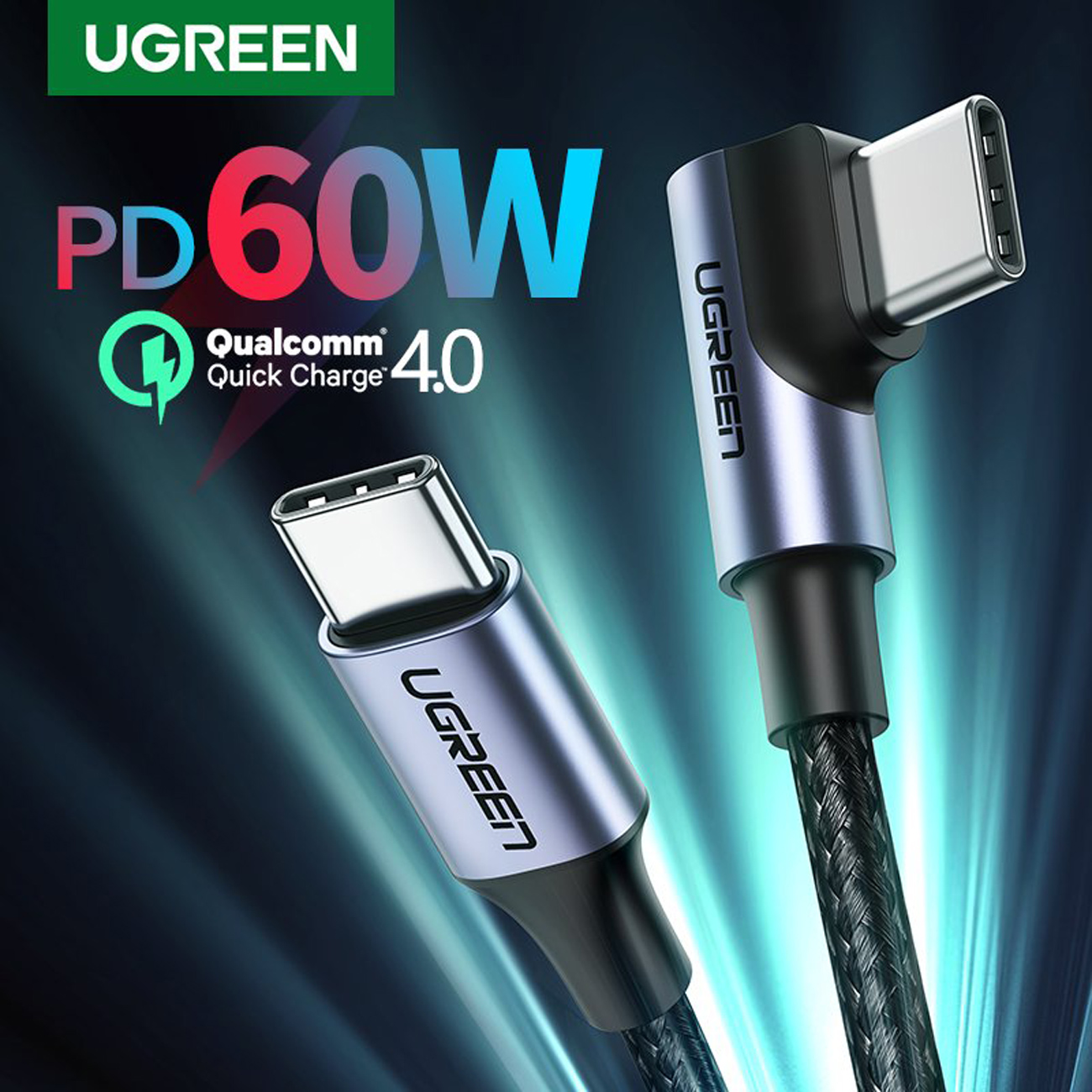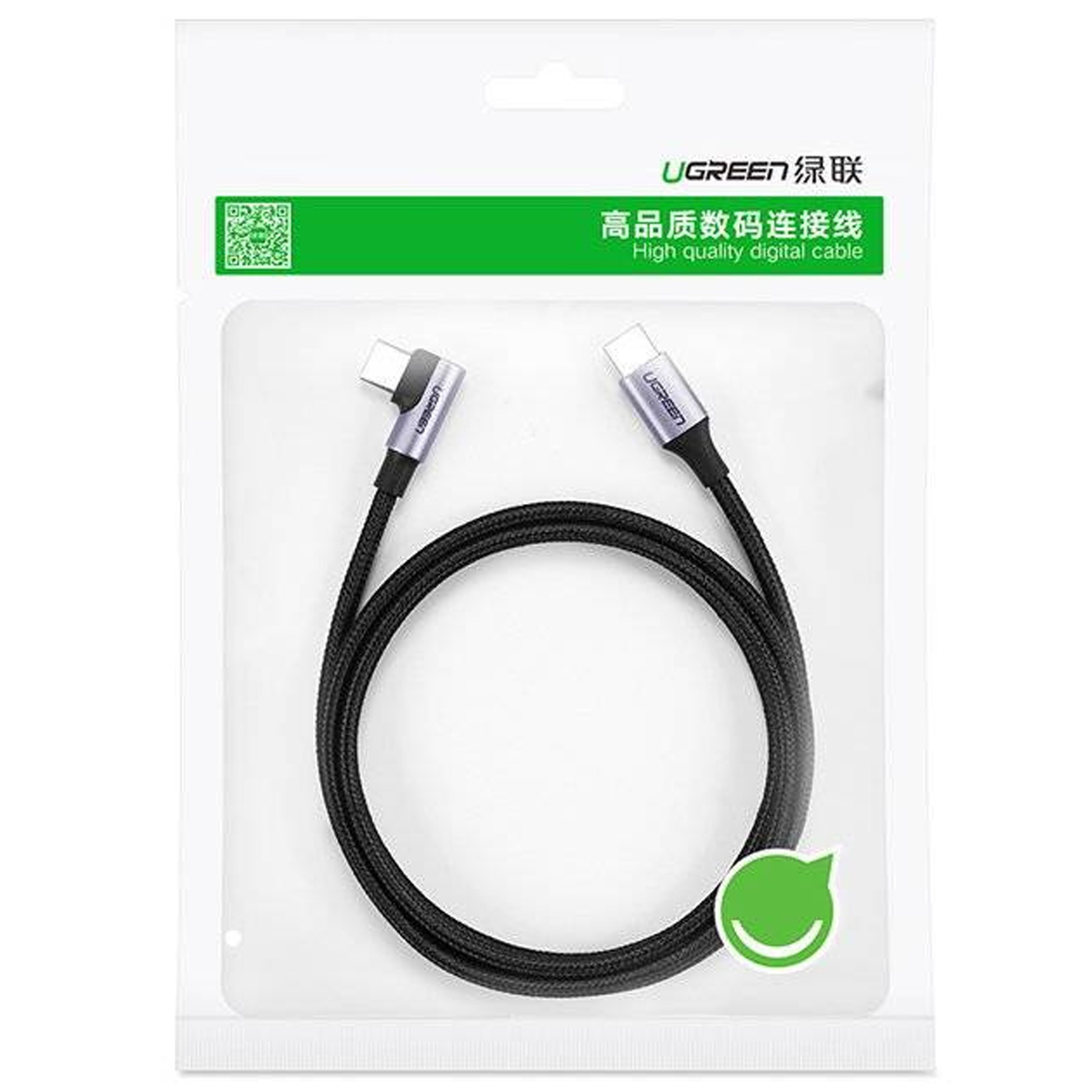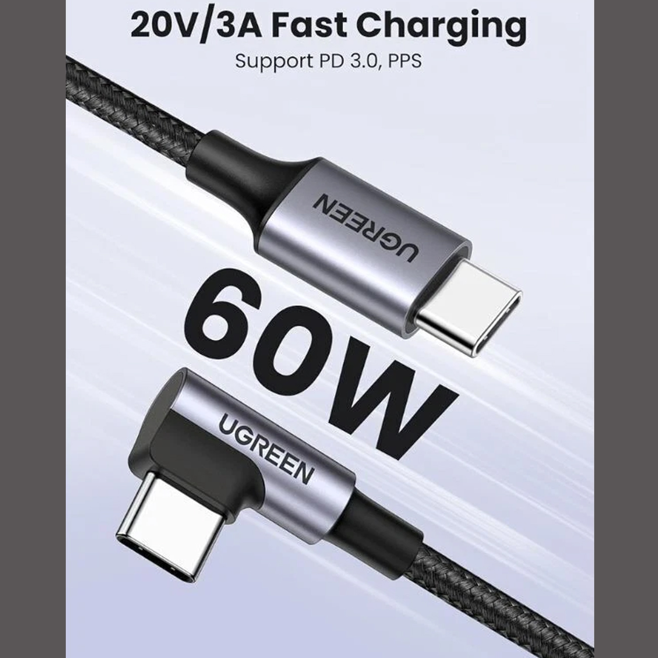 Ugreen angled cable USB Type C - USB Type C Power Delivery 60W 20V 3A 1m black-gray cable (US255 50123)