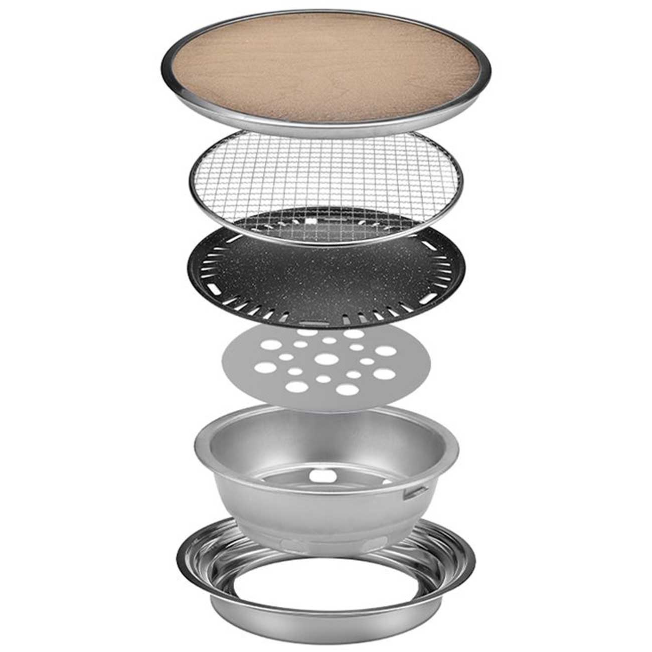 | محتویات بسته | میز چندکاره کمپینگ + تابه گریل + شبکه استیل + دفترچه راهنما |