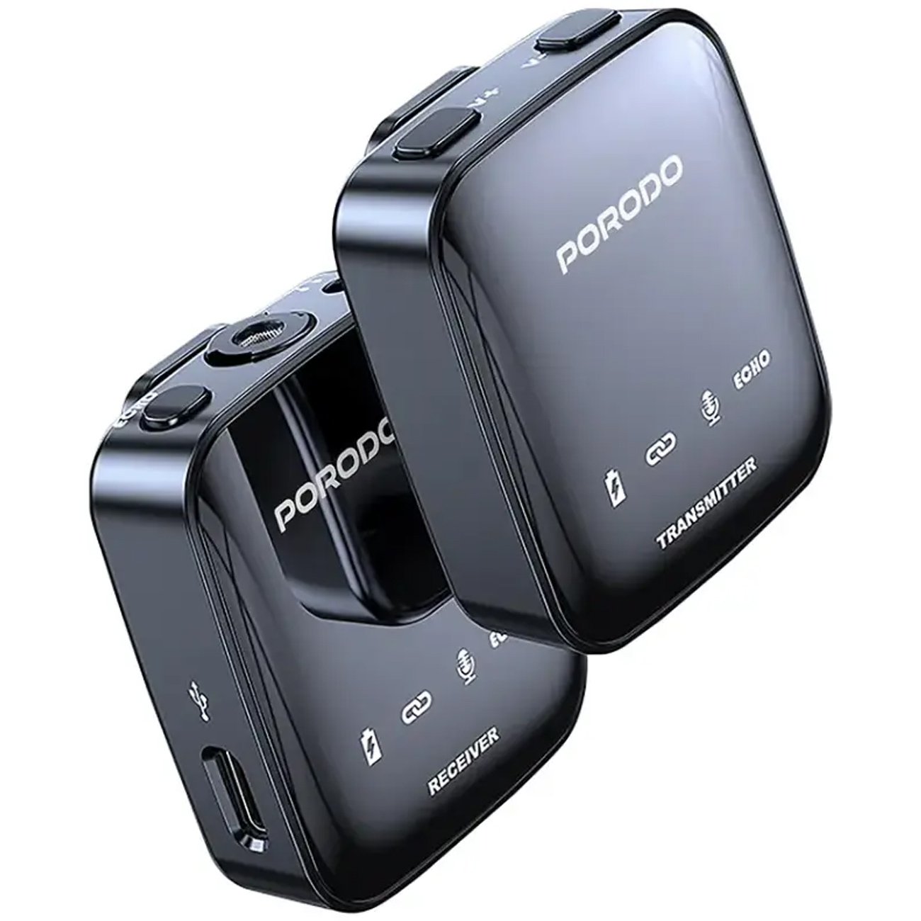 Porodo Two-Device Connect Handheld Lavalier Microphone PD-LFST133-BK-LFS133