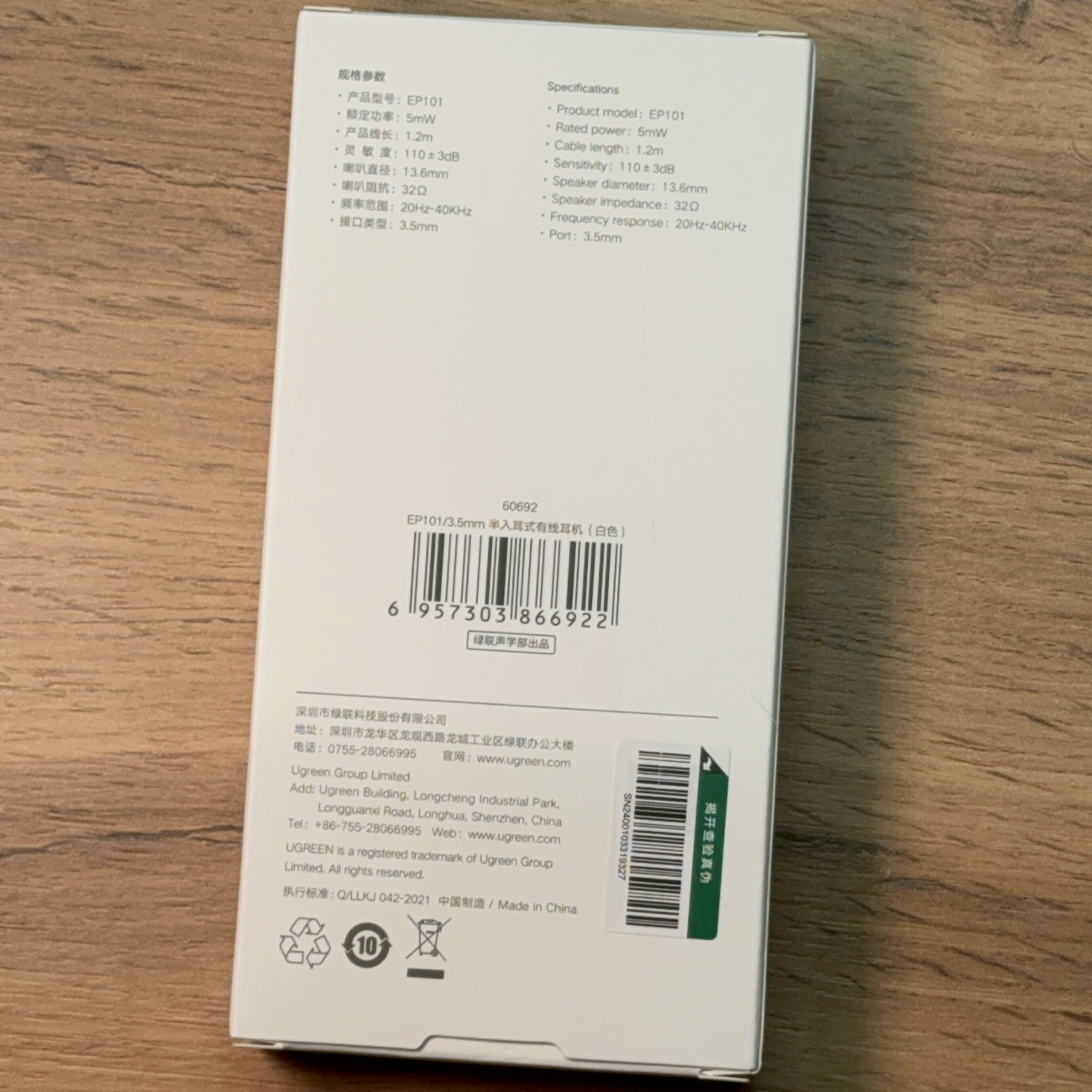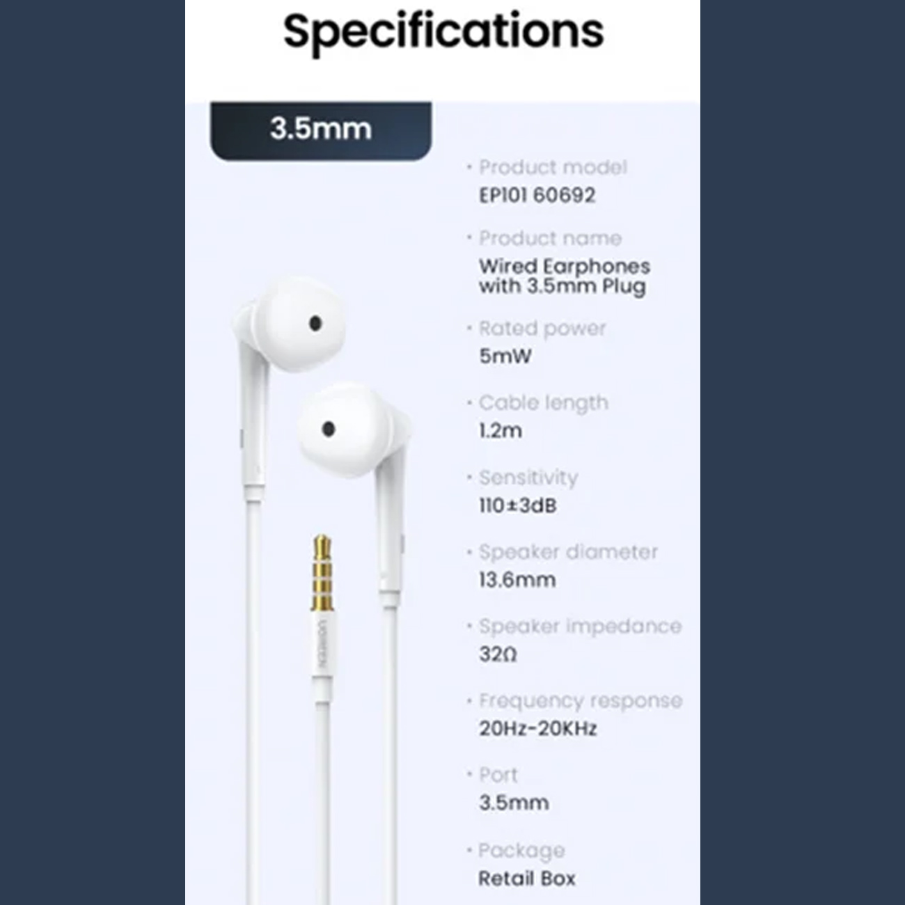 UGREEN EP101 60692 Wired Earphones with 3.5mm Plug