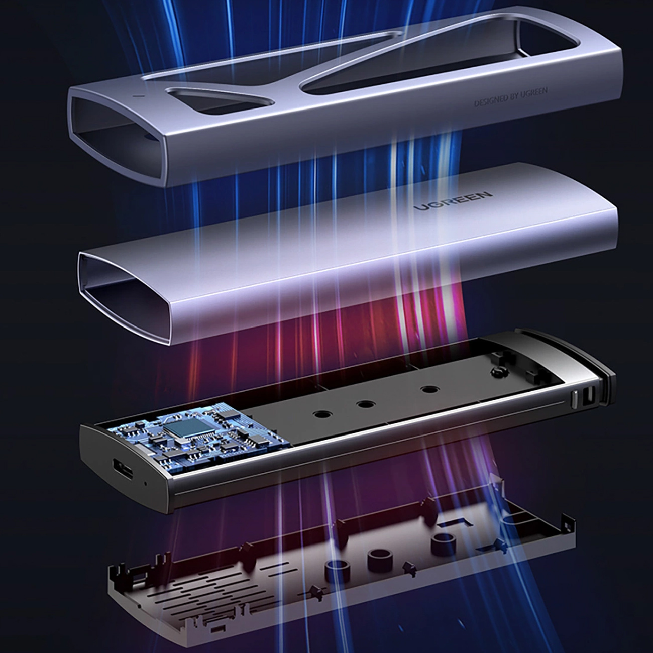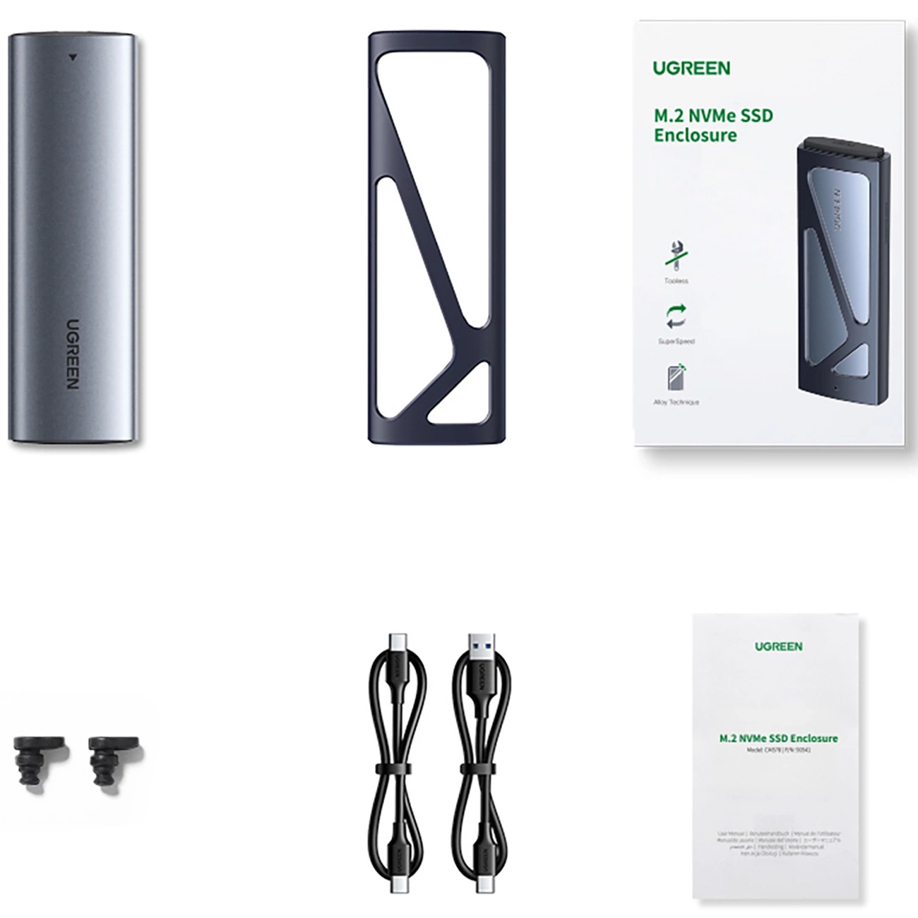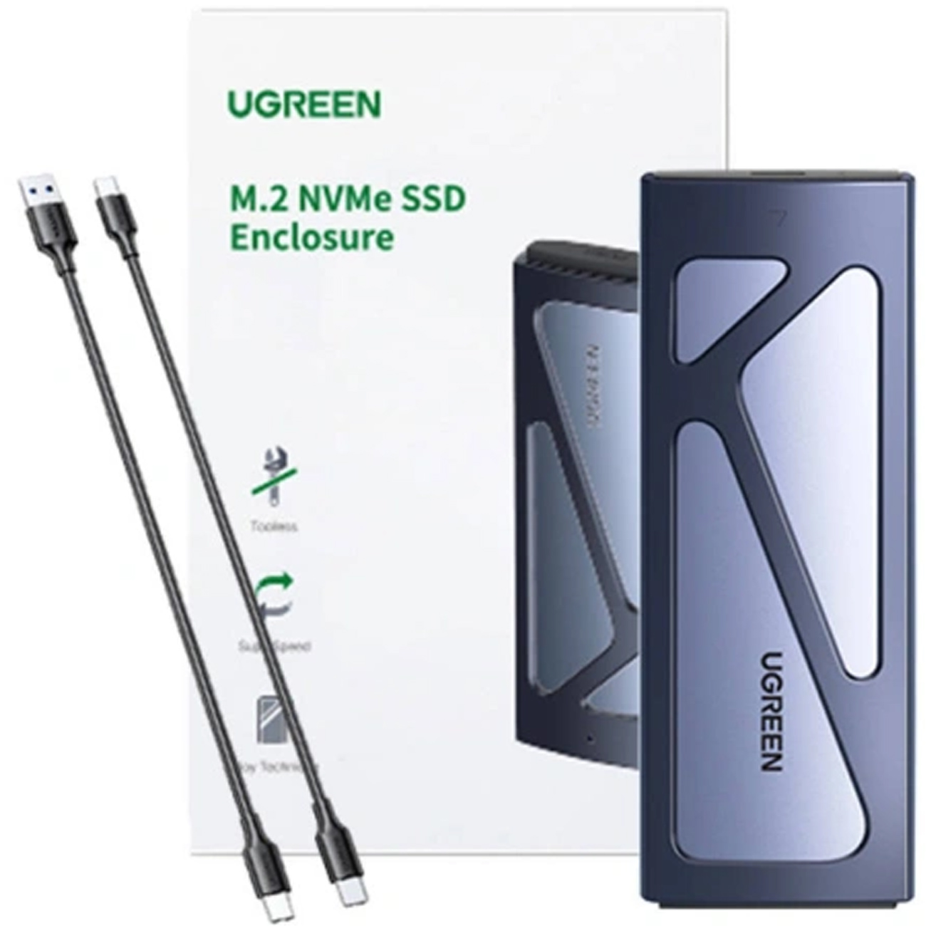 Ugreen CM578 15512 enclosure for M.2 NVMe 10Gbps drive + USB-C / USB-A cable + USB-C / USB-C cable