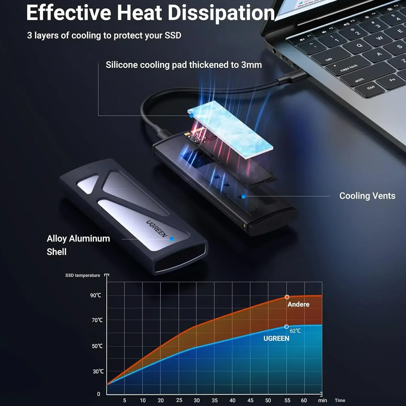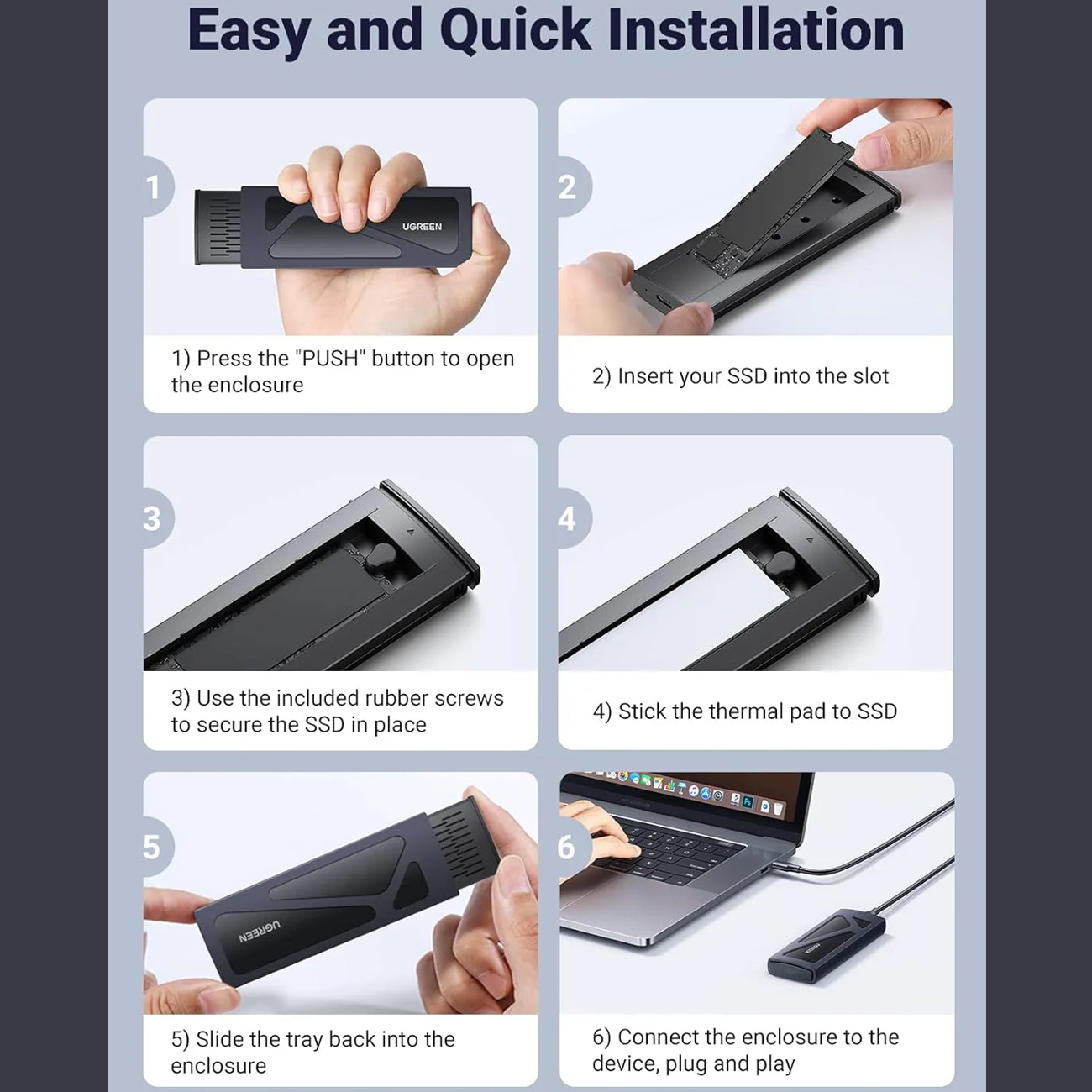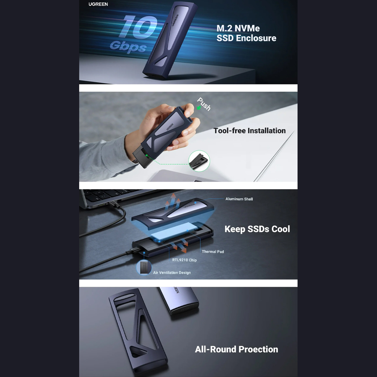 Ugreen CM578 15512 enclosure for M.2 NVMe 10Gbps drive + USB-C / USB-A cable + USB-C / USB-C cable