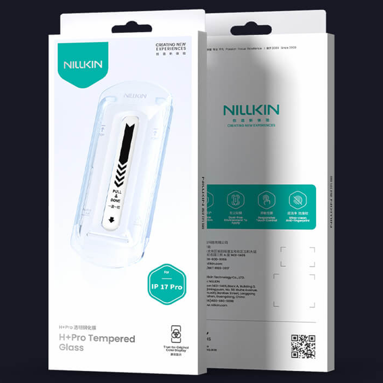 گلس شیشهای شفاف آیفون 17 پرو نیلکین Nillkin H+ Pro همراه با کیت نصب