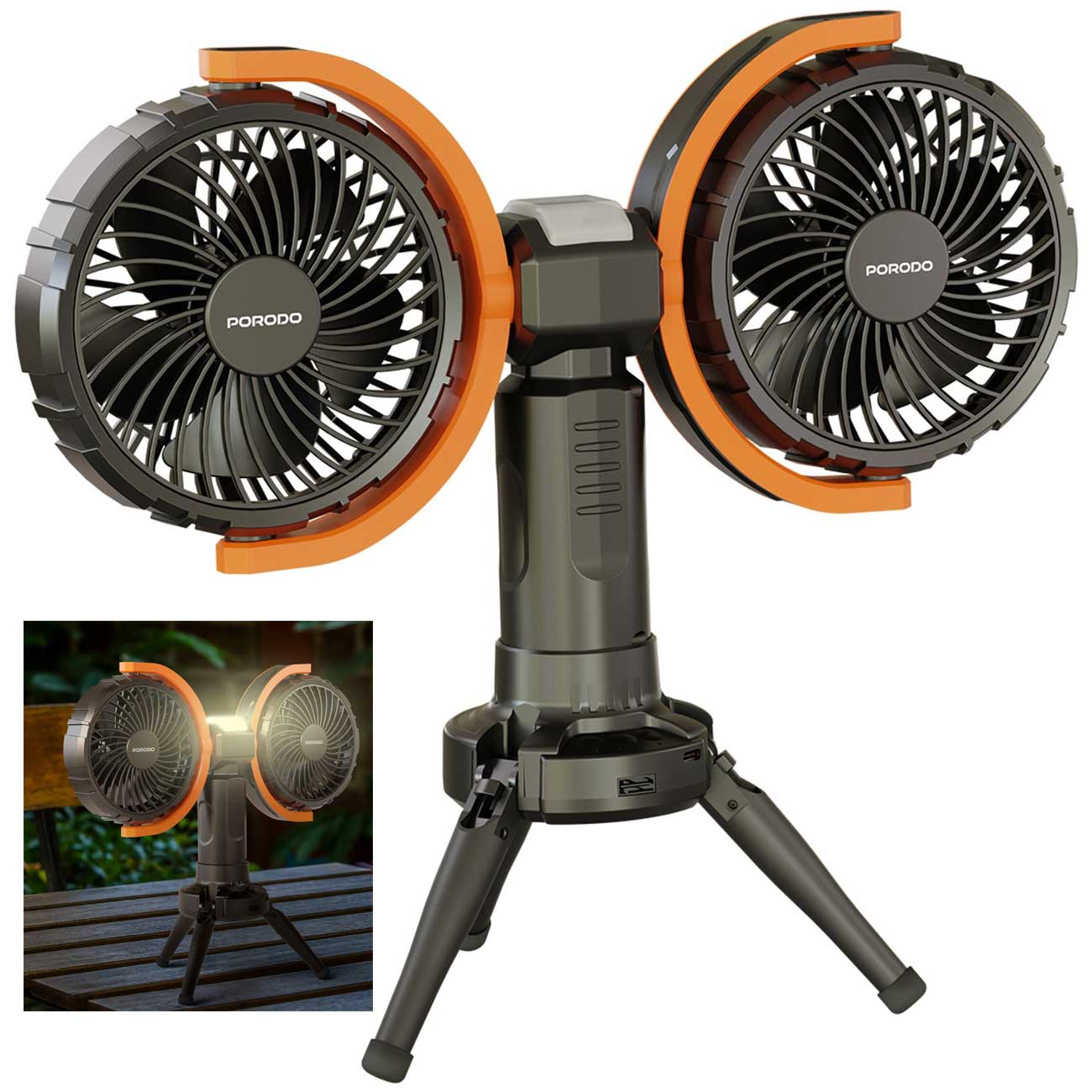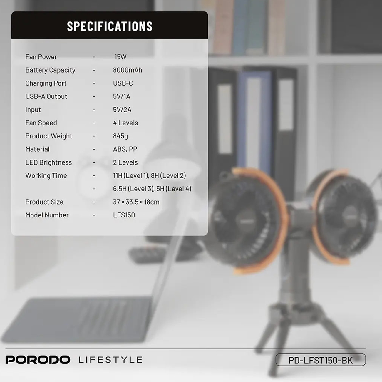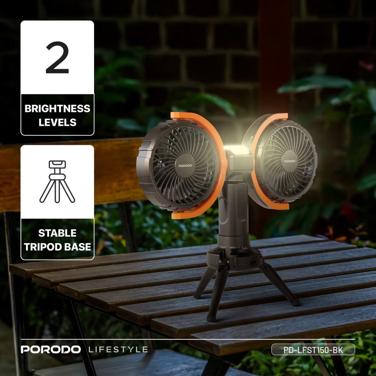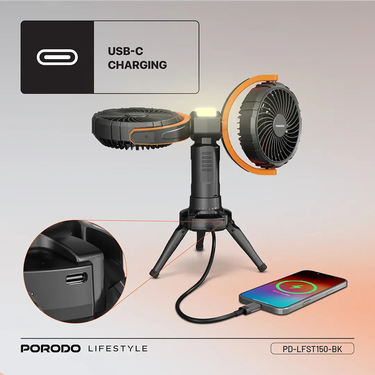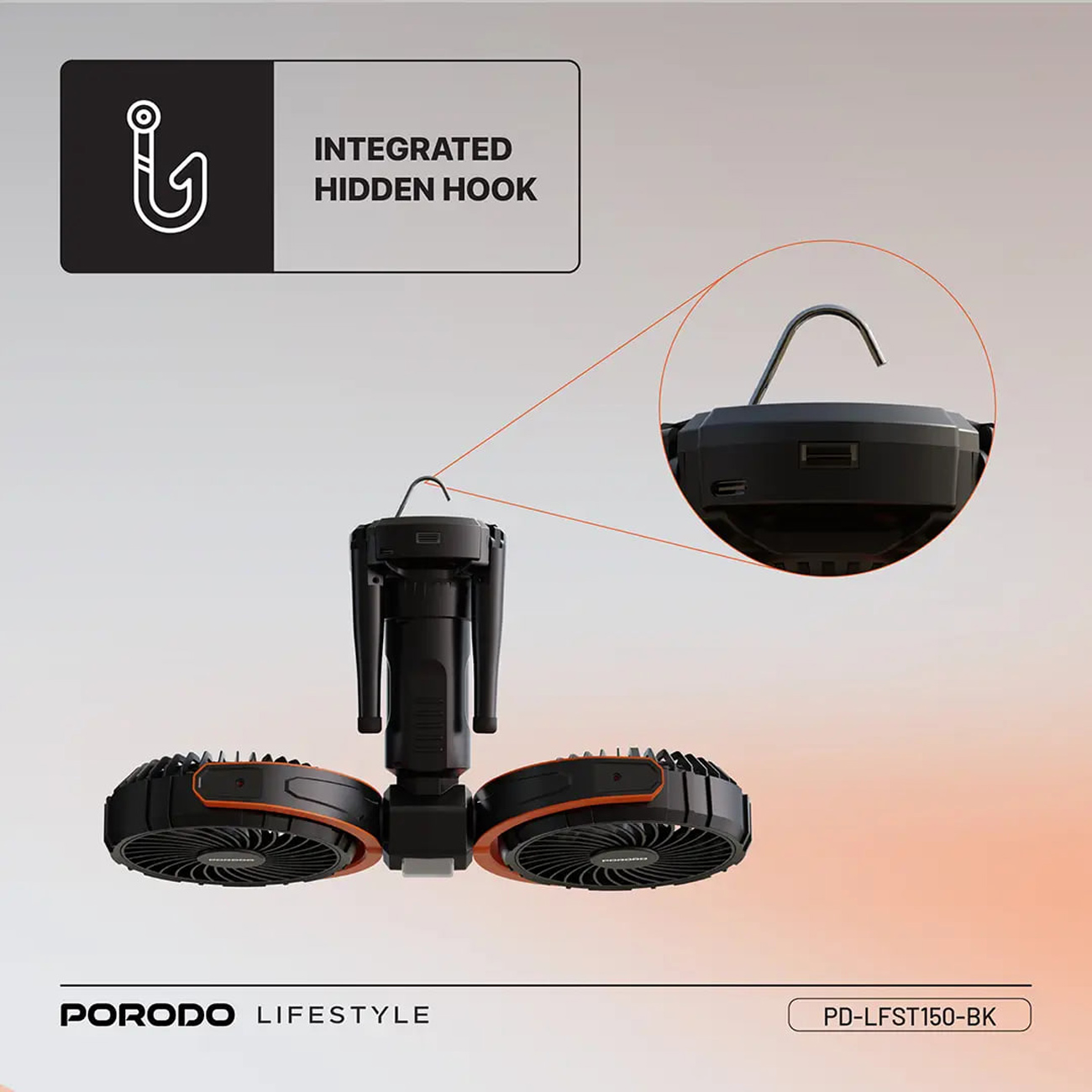پنکه شارژی، چراغ کمپینگ و پاور بانک پورودو Porodo PD-LFST150-BK رومیزی و قابل آویز