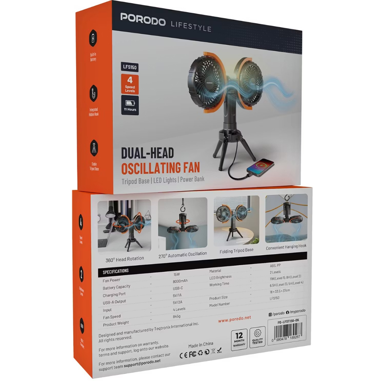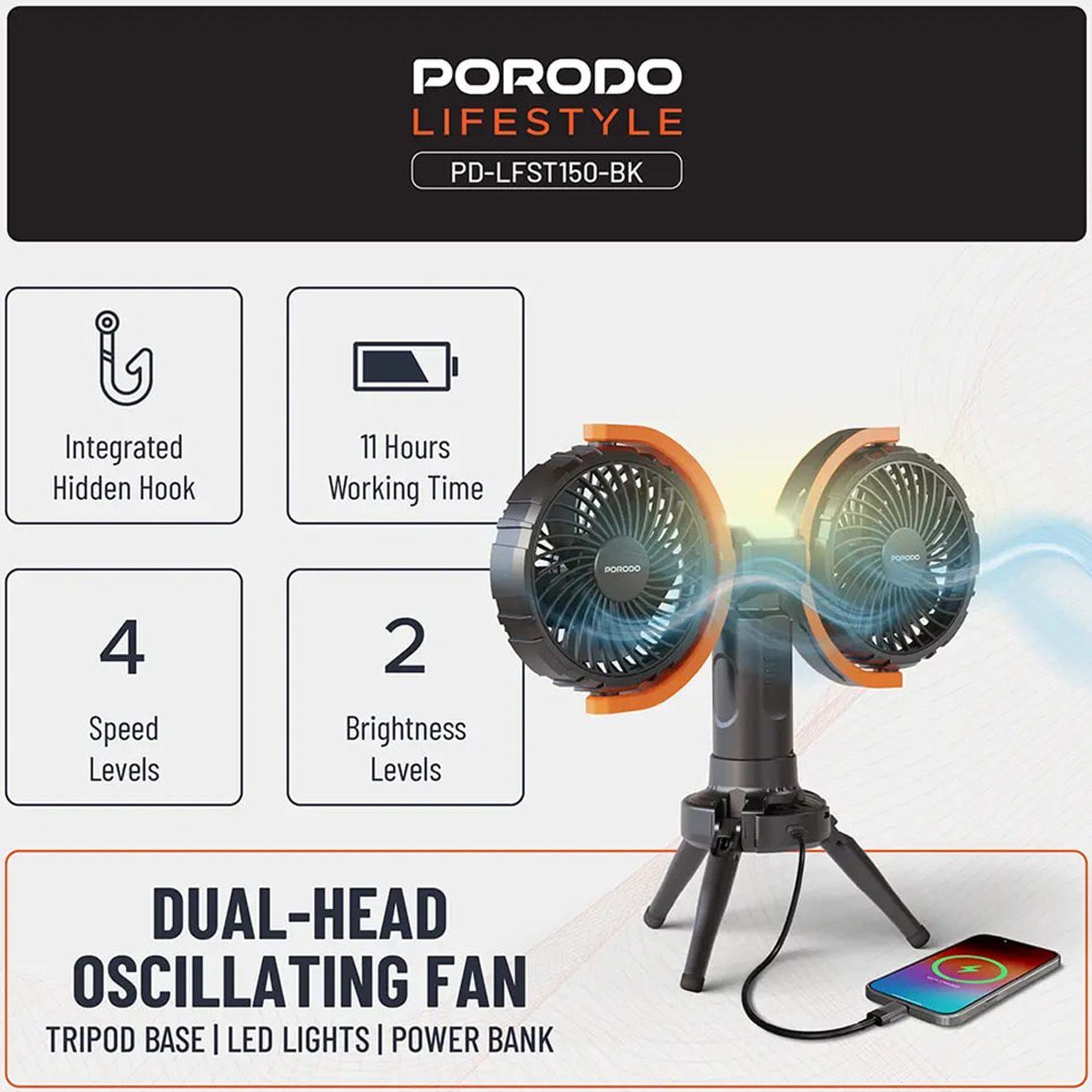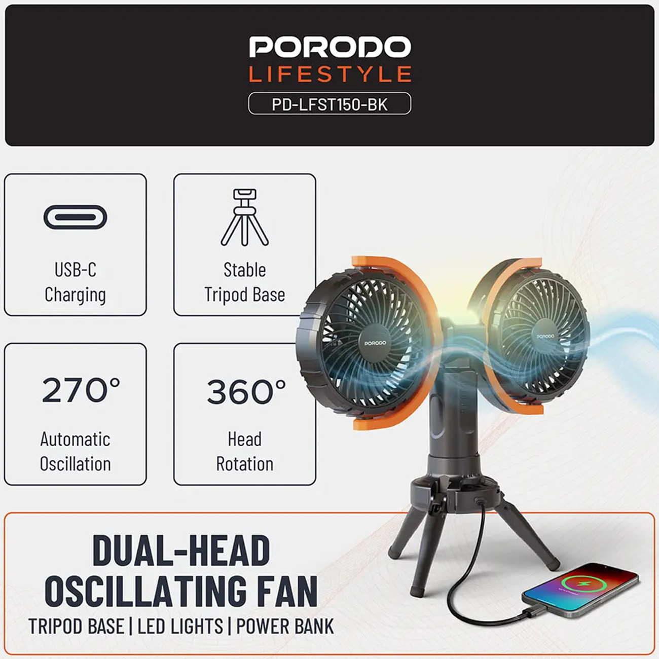 Porodo Lifestyle Dual-Head Oscillating Fan PD-LFST150-BK