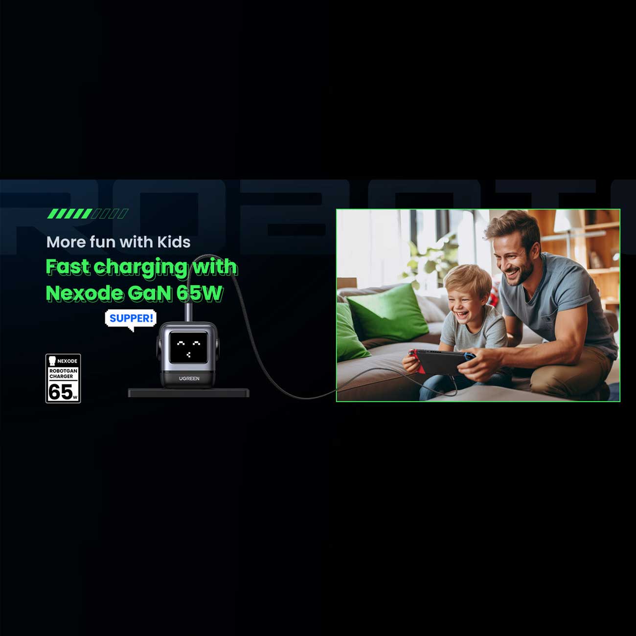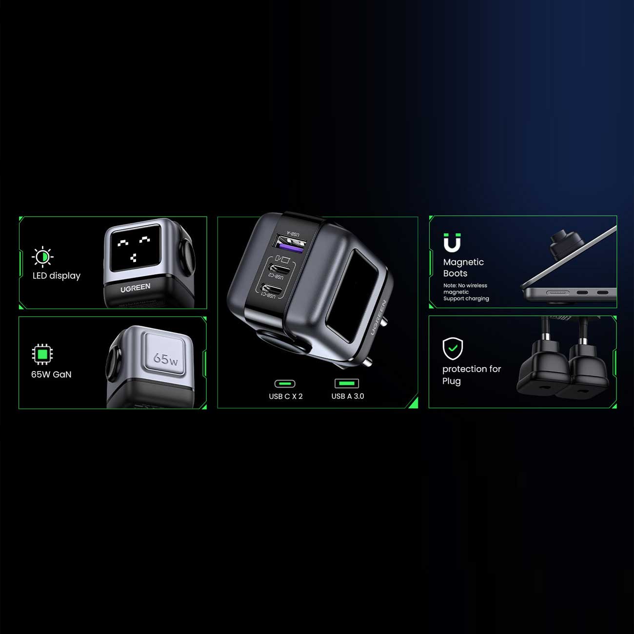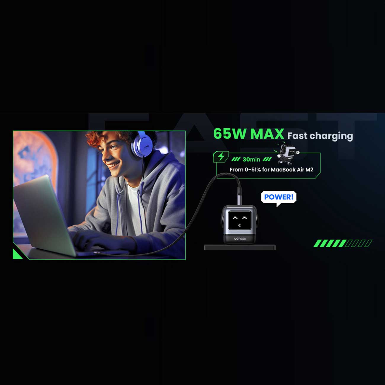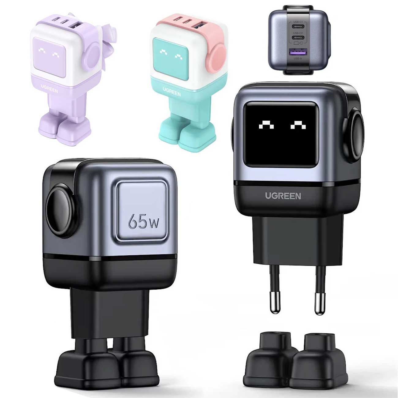 Ugreen CD361 Nexode RG Robot GaN 65W Fast Wall Charger with 2 USB-C PD & USB
