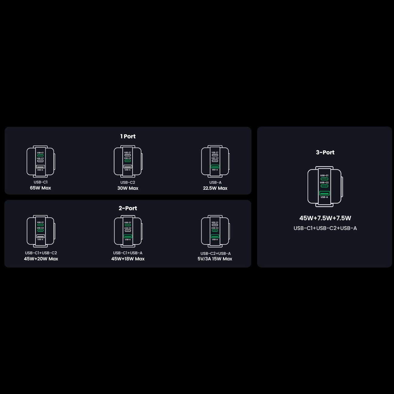| خروجی USB-C PD 1 | DC 5.0V-3.0A 15.0W, 9.0V-3.0A 27.0W, 12.0V-3.0A 36.0W, 15.0V-3.0A 45.0W, 20.0V-3.25A 65.0W |