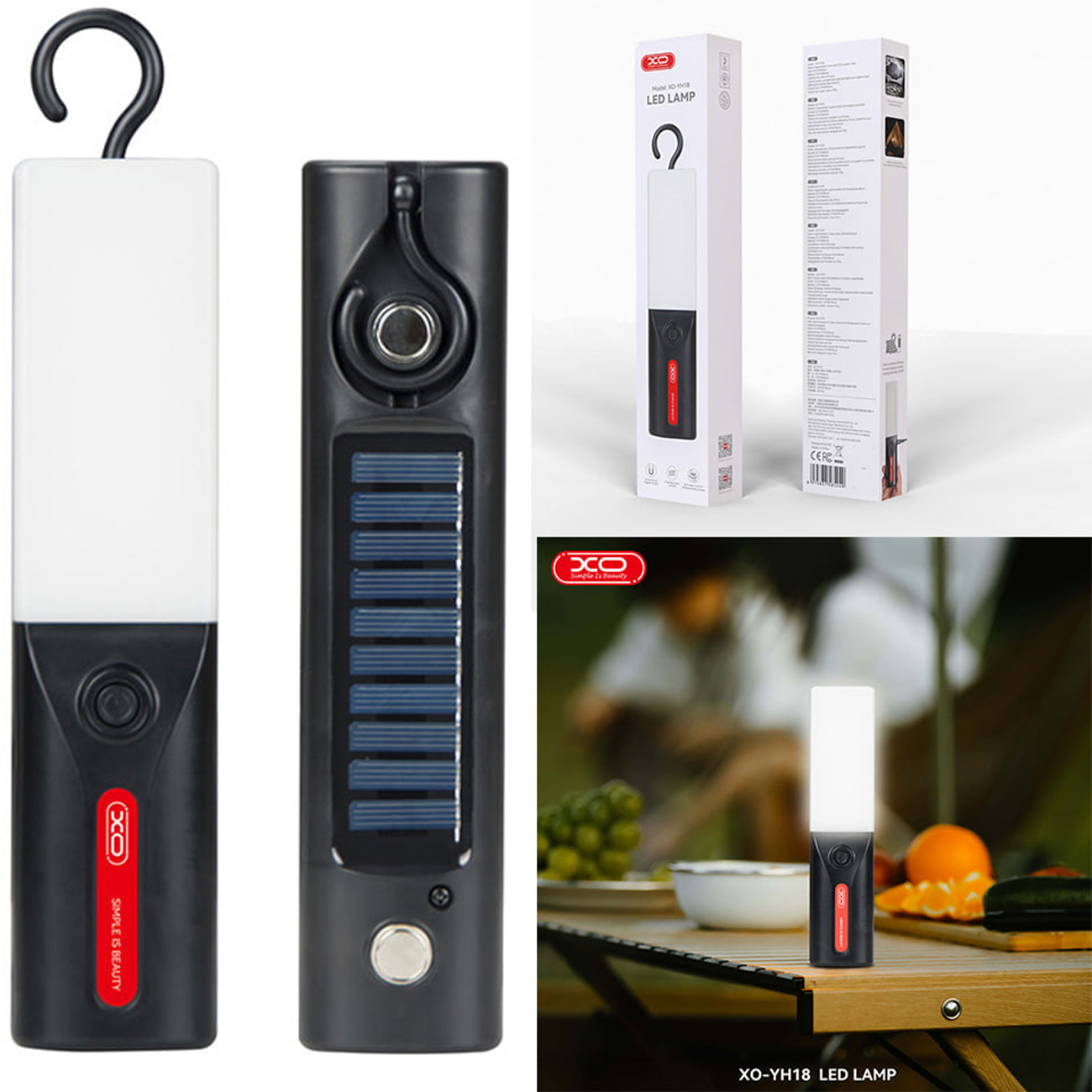 چراغ شارژی کمپینگ ایکس او XO YH18 مغناطیسی خورشیدی