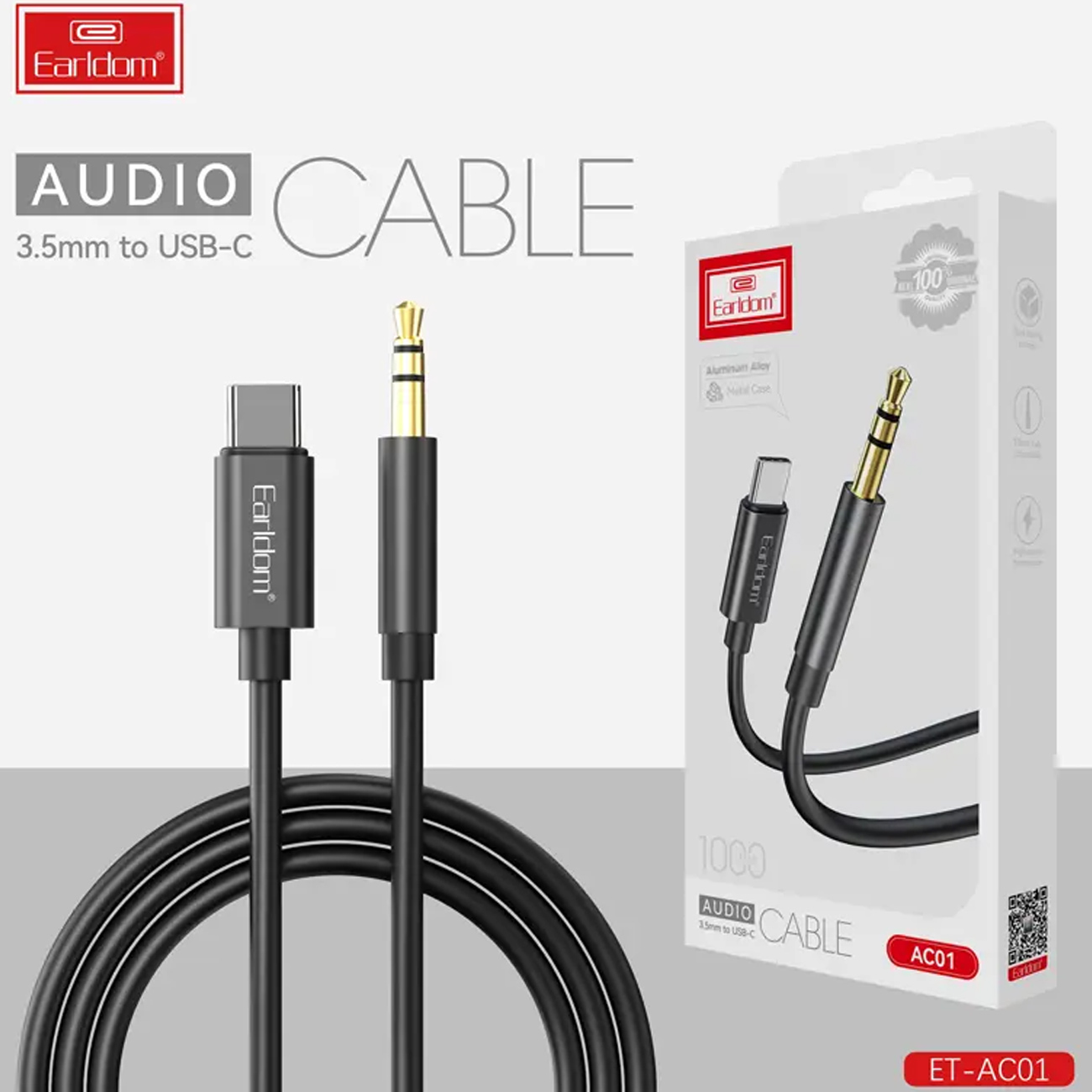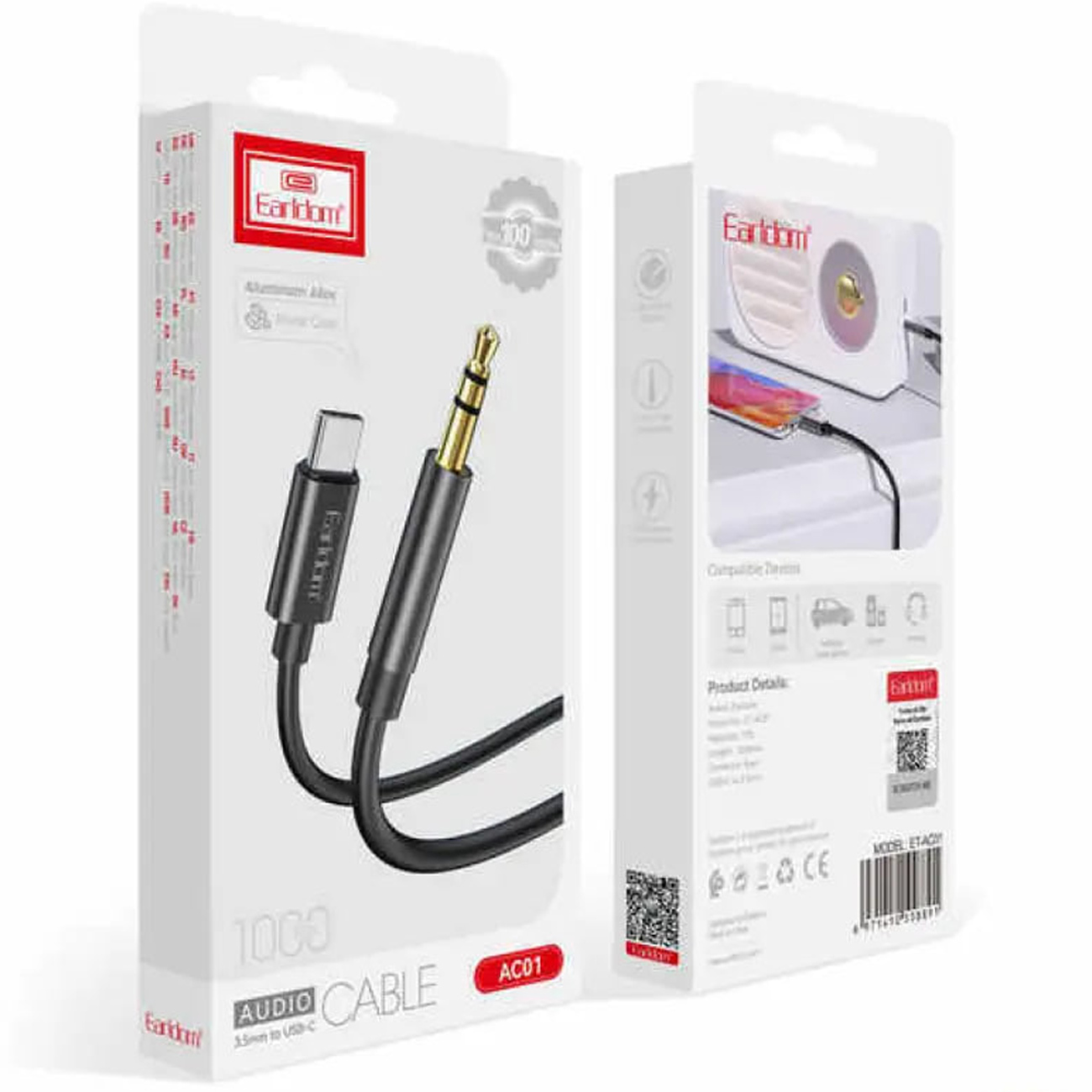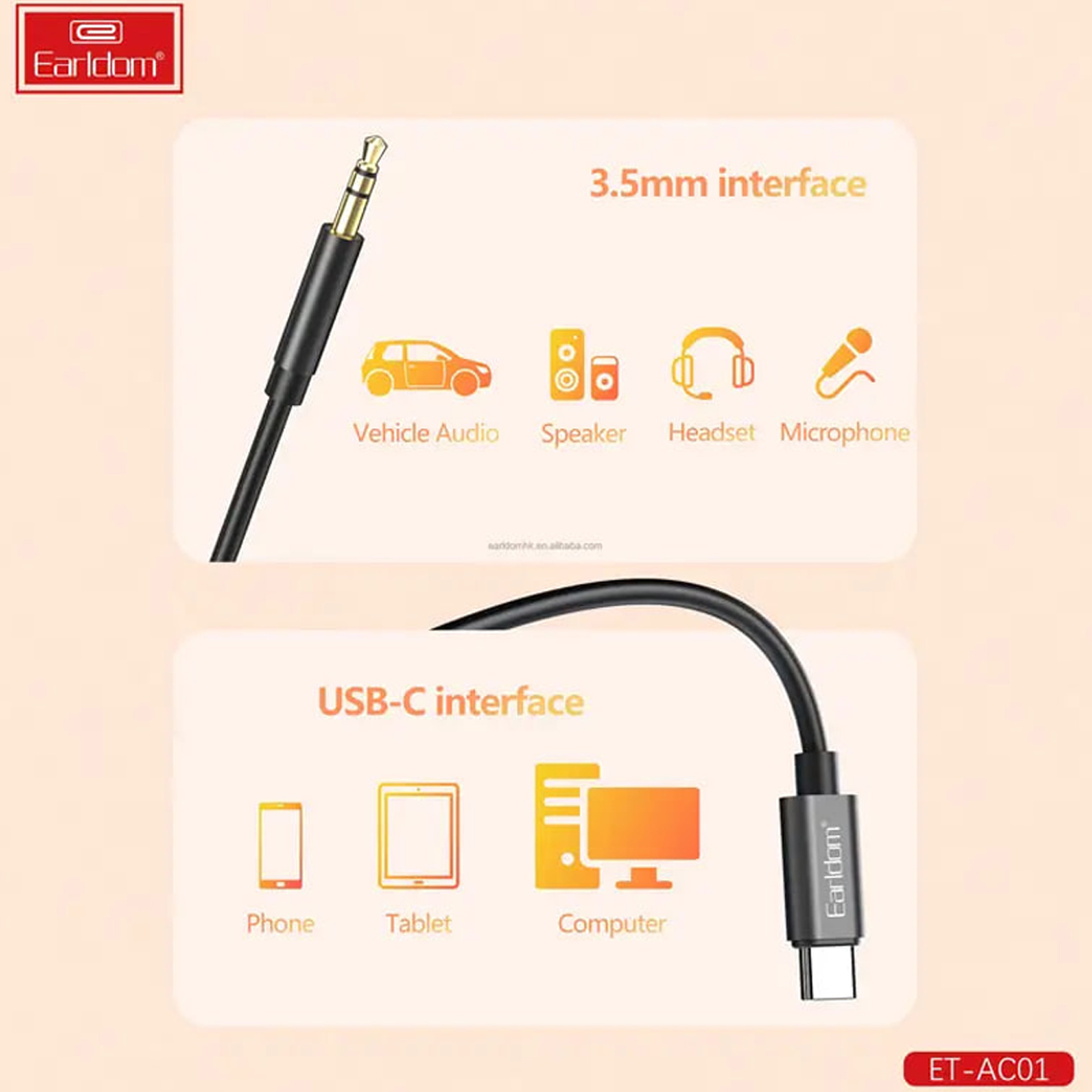 EARLDOM AC01 Cable Type-C male to 3.5mm Jack male Car AUX Audio Adapter