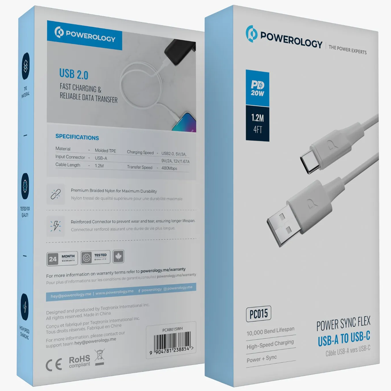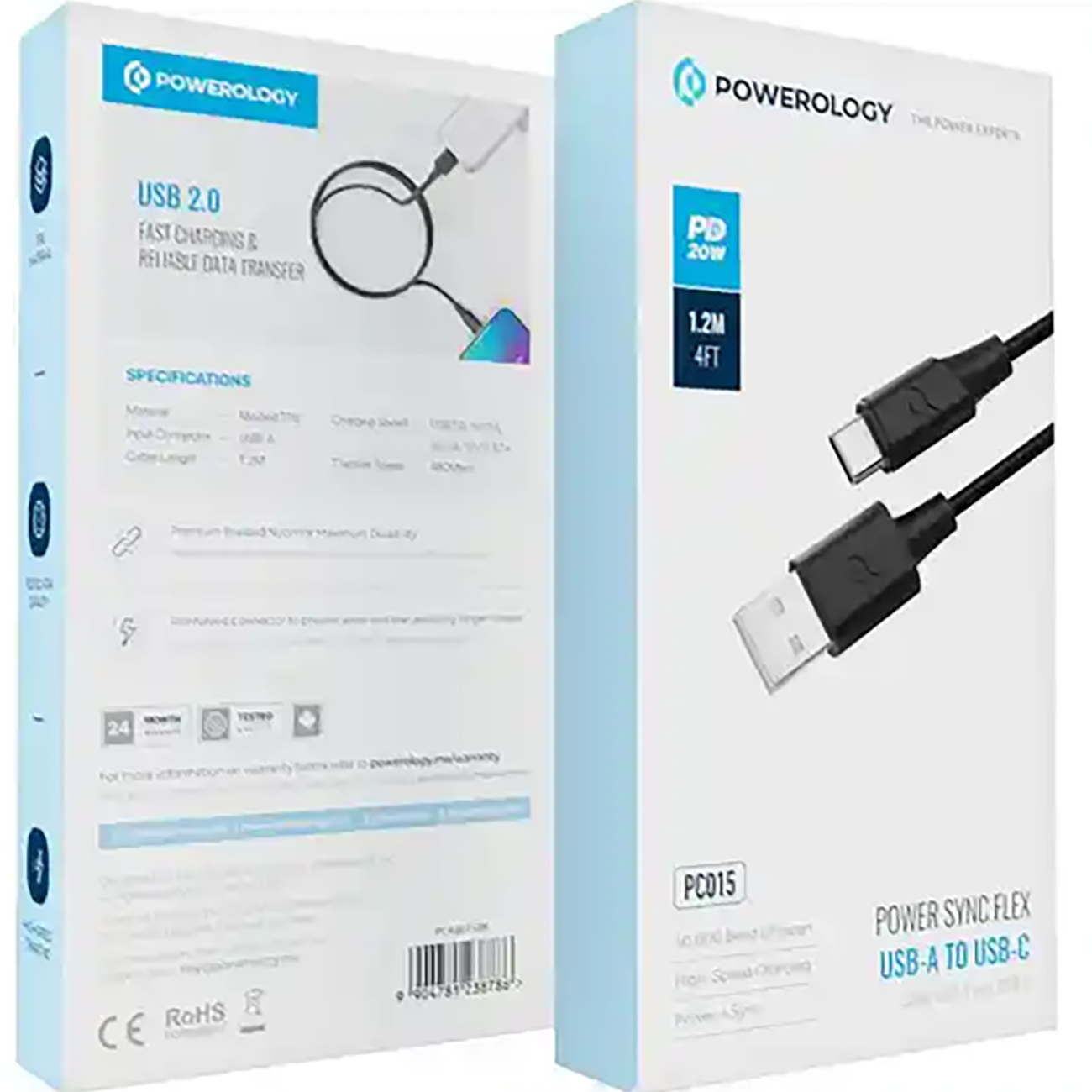Powerology Power Sync Flex PCAB015BK Fast Charging Data Cable USB to Type-C PC015