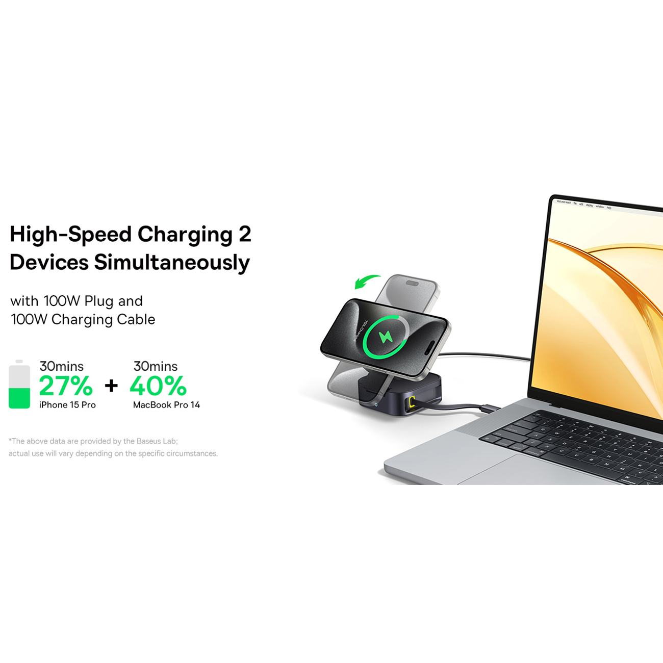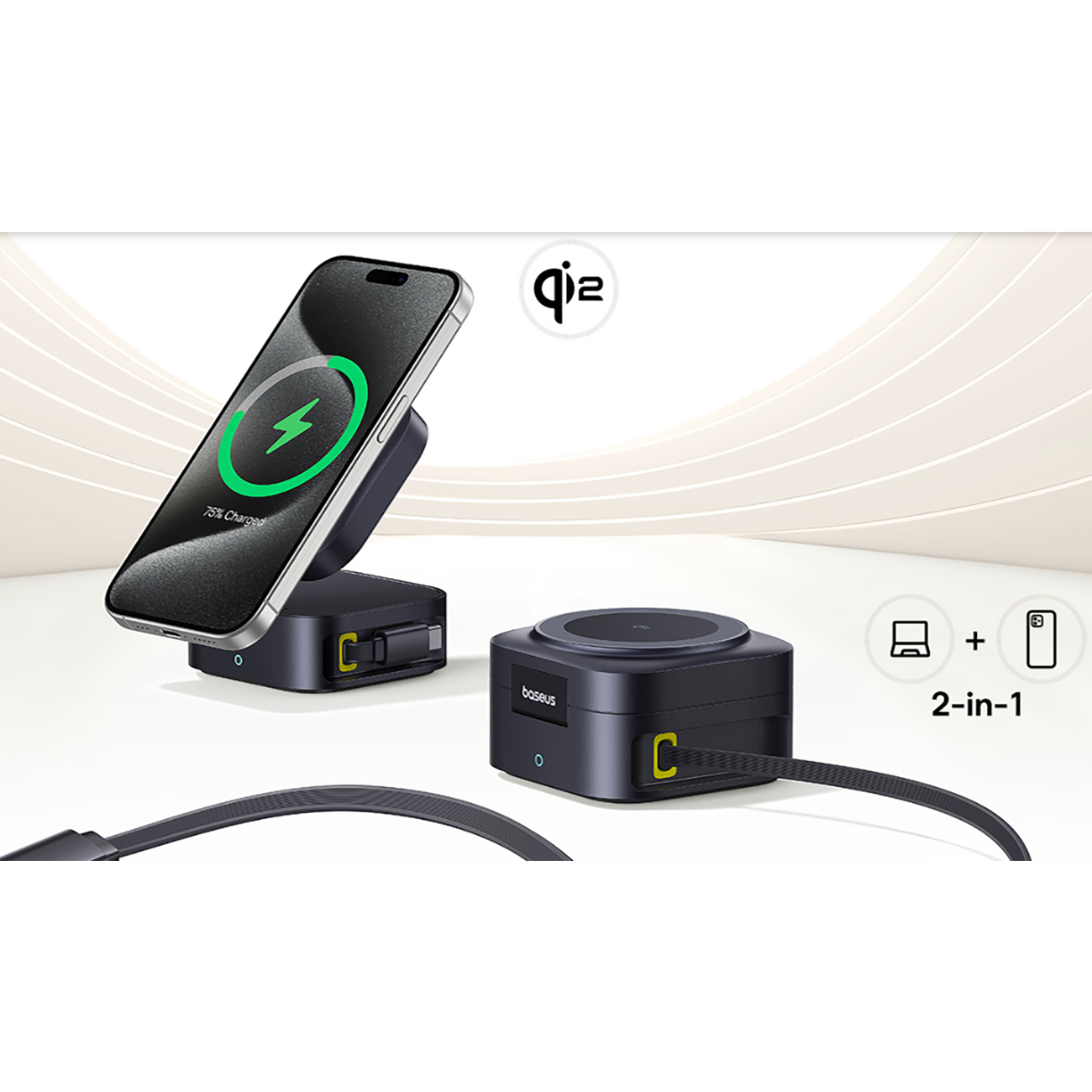 Baseus PicoGo BSW-540 Wireless Charger, Qi2 67W Retractable Cable, 2-in-1 Wireless Charging Station