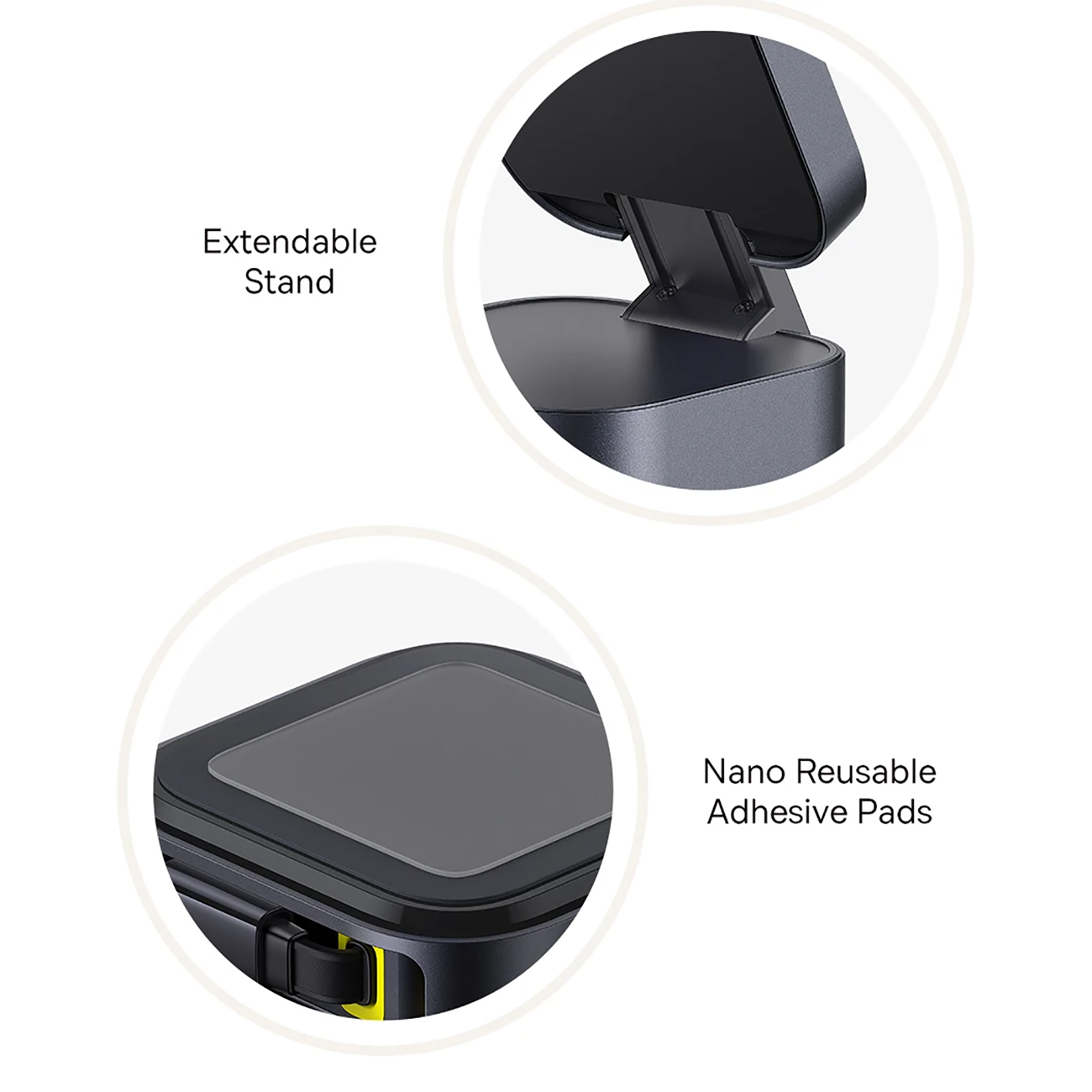 | پدهای چسبی قابل استفاده مجدد برای قرارگیری پایدار در هر نقطه | |