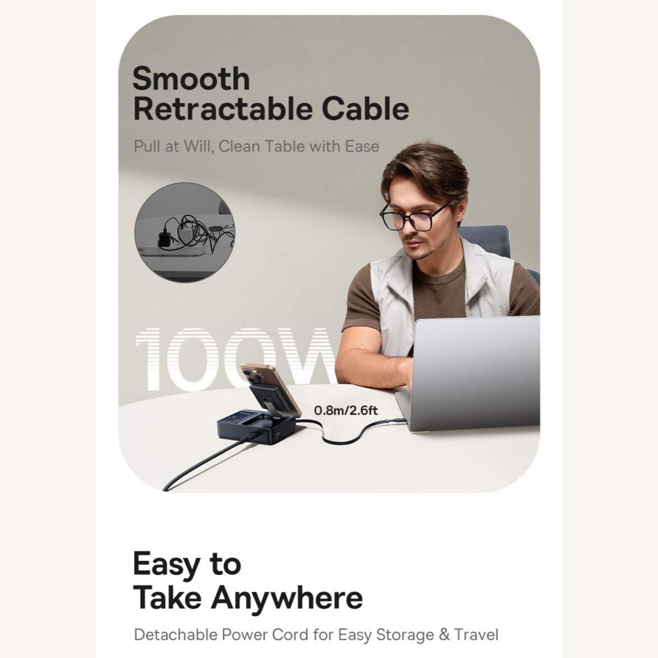 Baseus Nomos Qi2 5-in-1 Desktop Charger with Retractable Cable CCNMS140 P10170901123-00