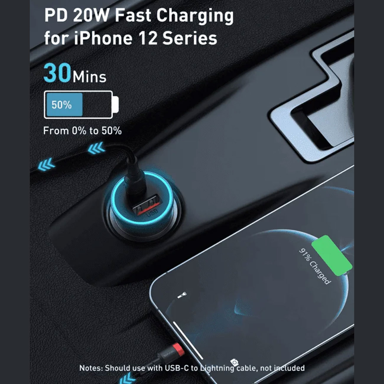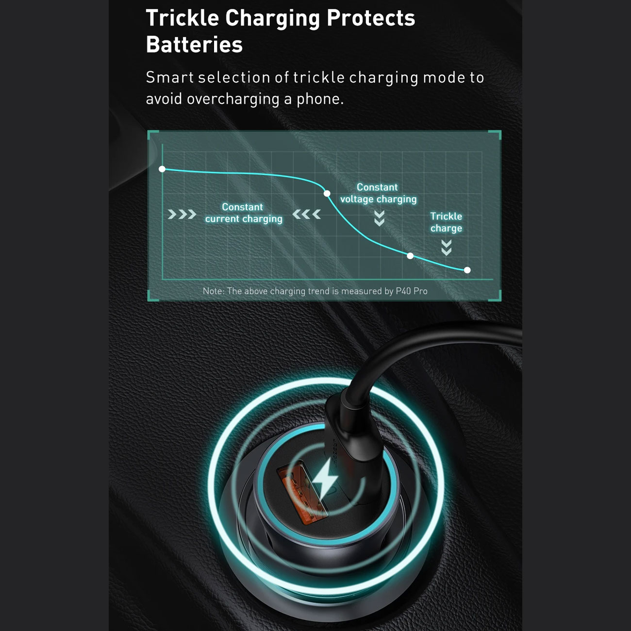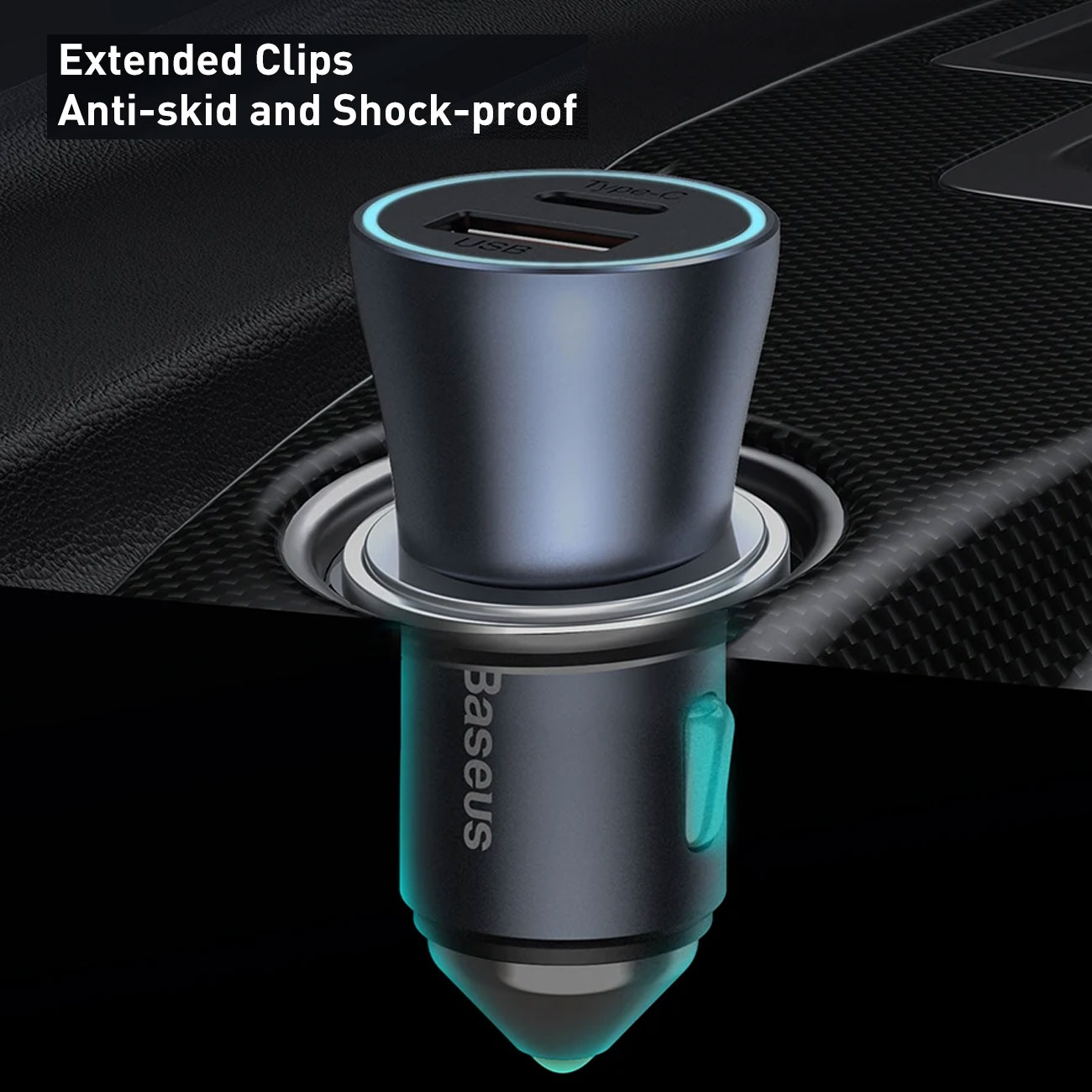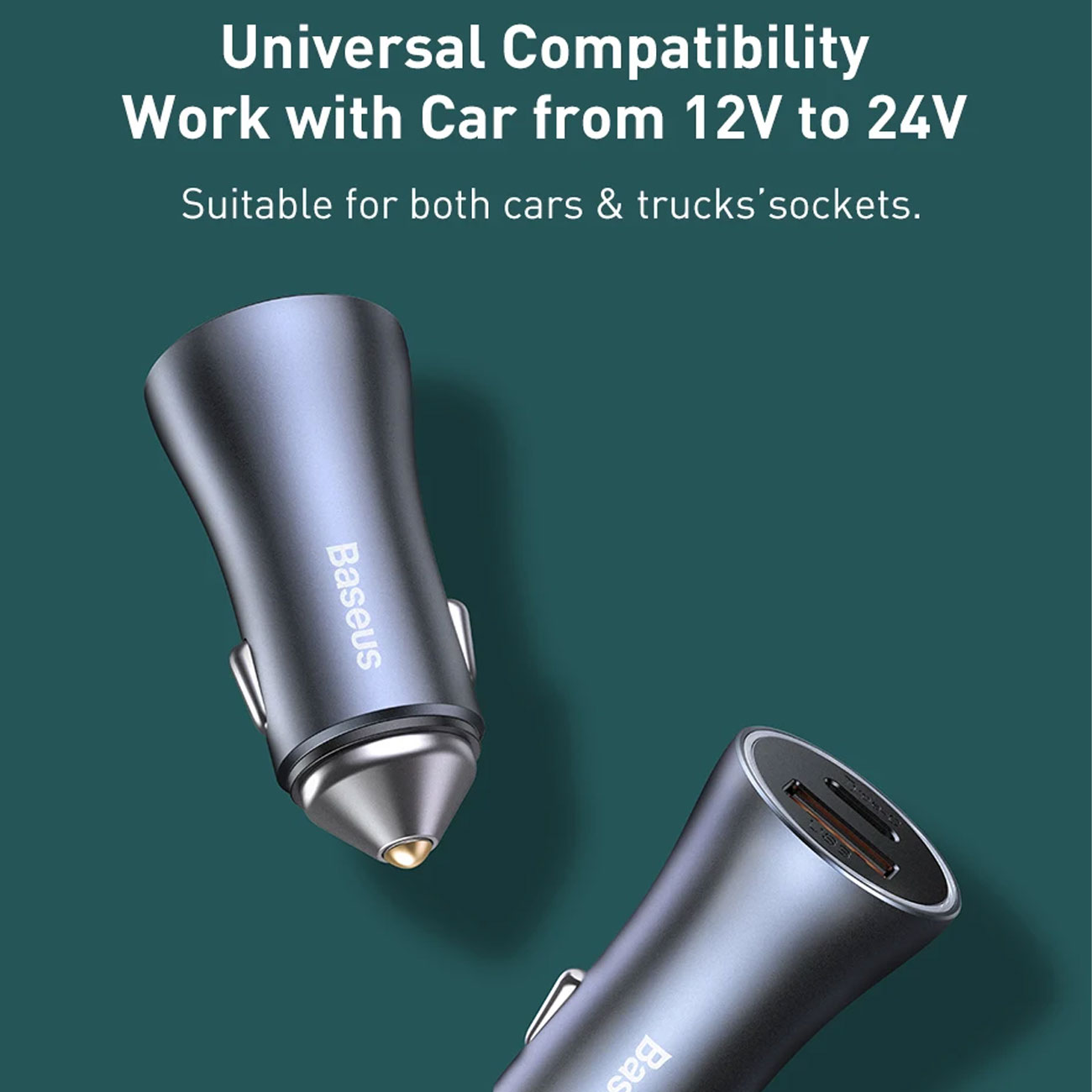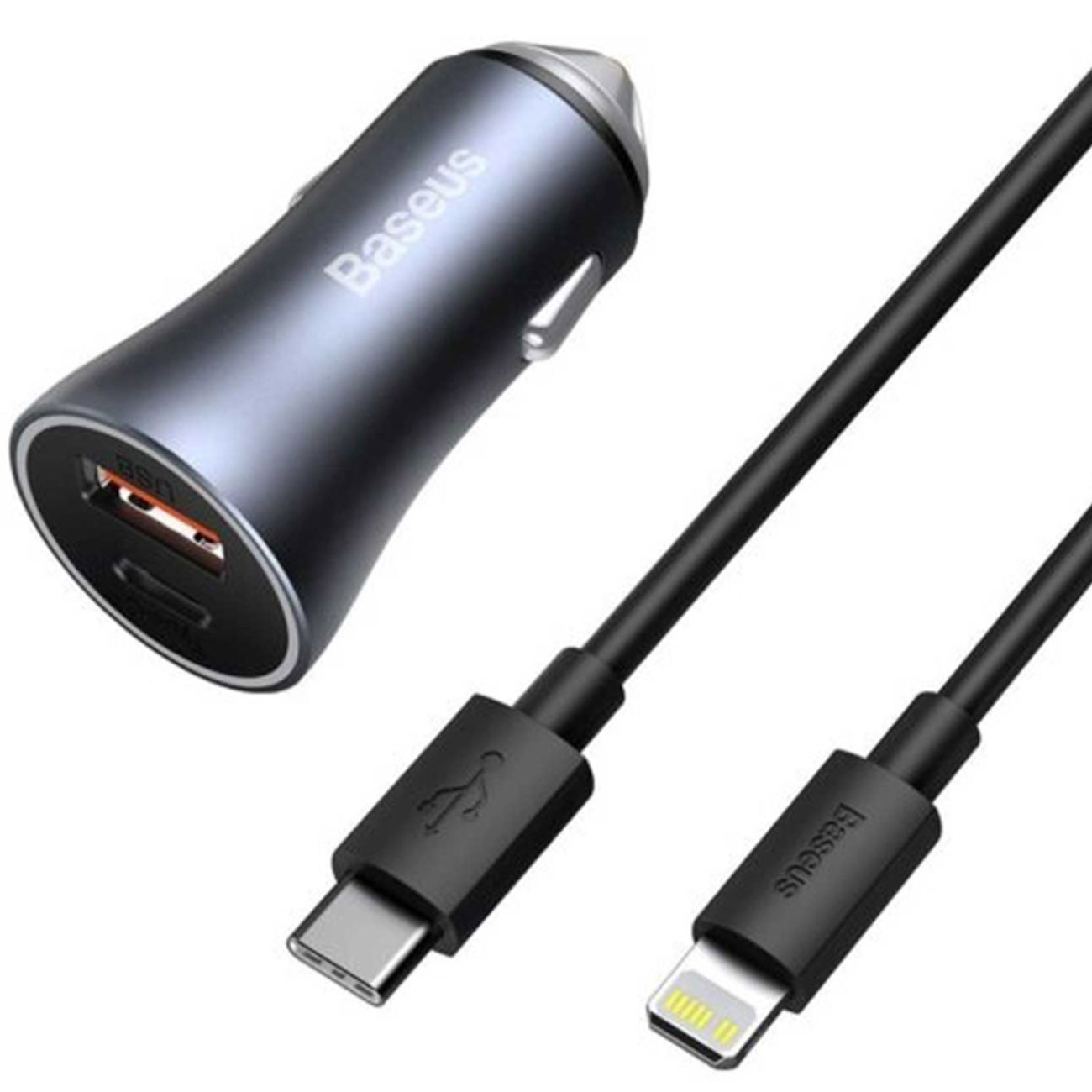 شارژر فندکی فست شارژ ماشین تایپسی 40 وات بیسوس TZCCJD-B0G با کابل تایپسی به لایتنینگ