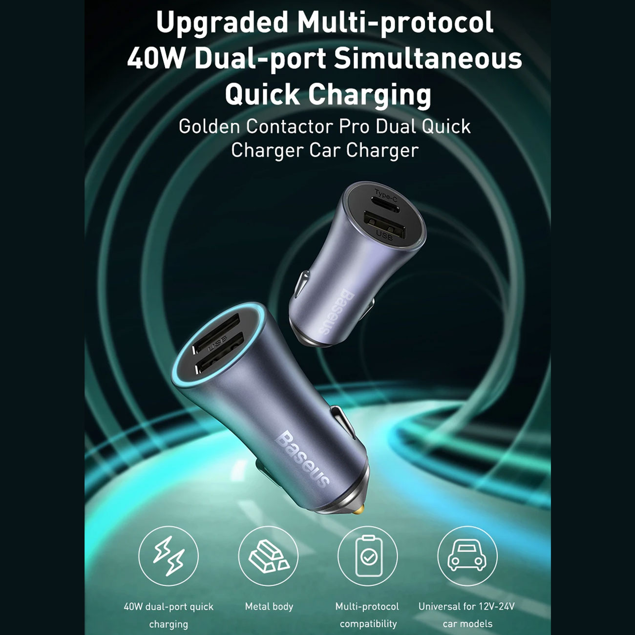 Baseus Golden Contactor Pro Dual Quick Charger Car Charger U+C 40W TZCCJD-B0G