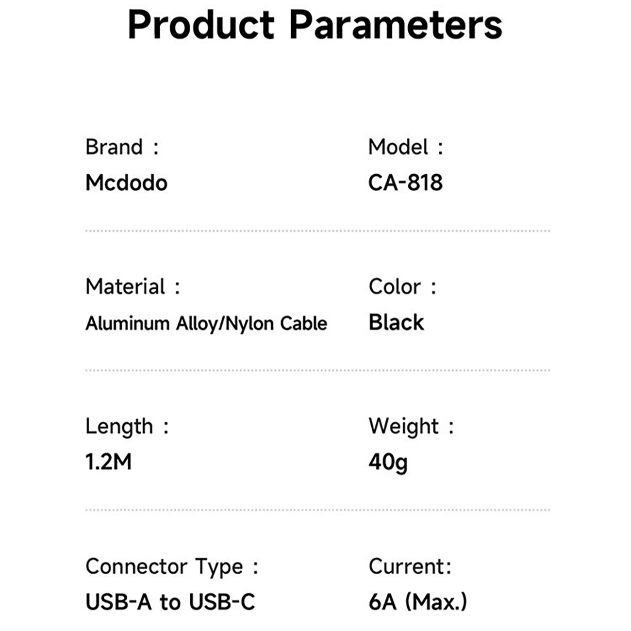 کابل فستشارژ USB به تایپ سی 100 وات 6 آمپر 1.2 متری مک دودو MCDODO CA-8180