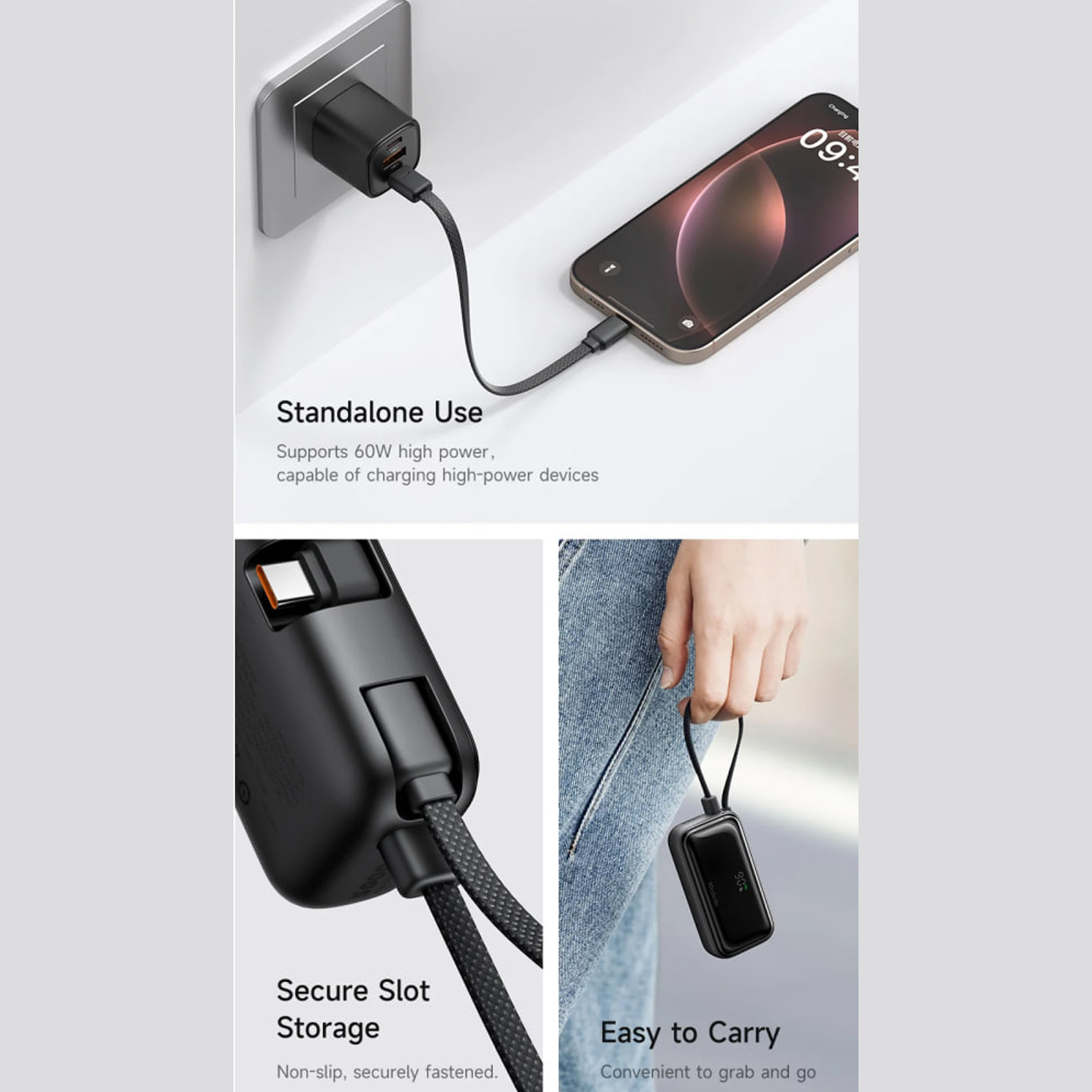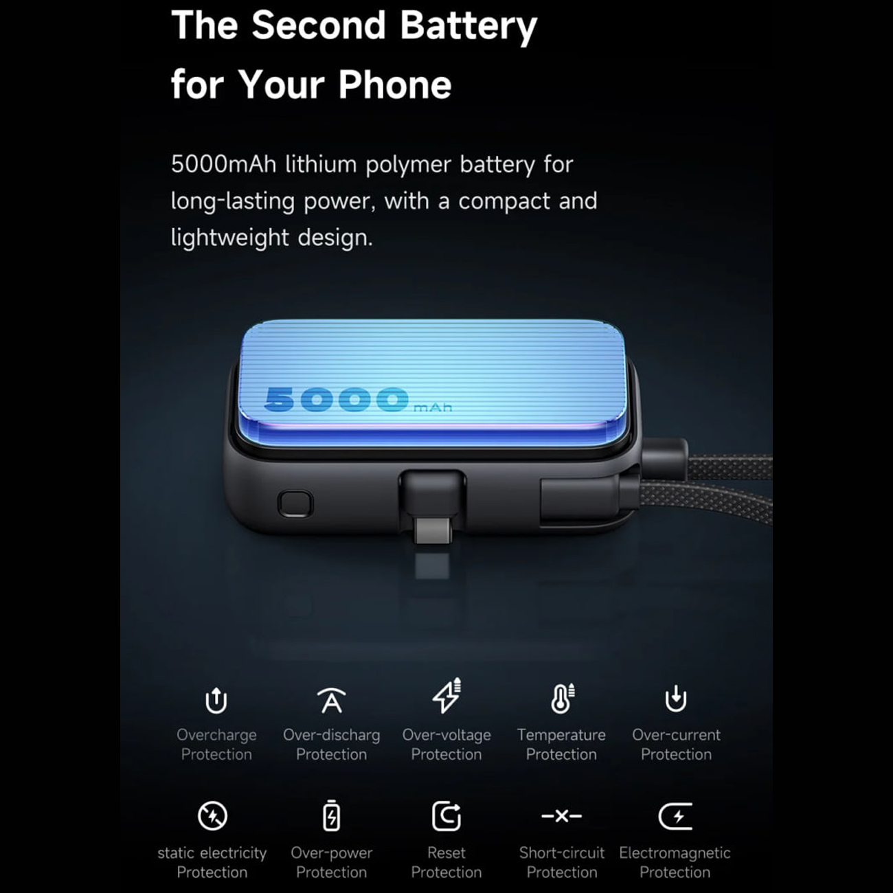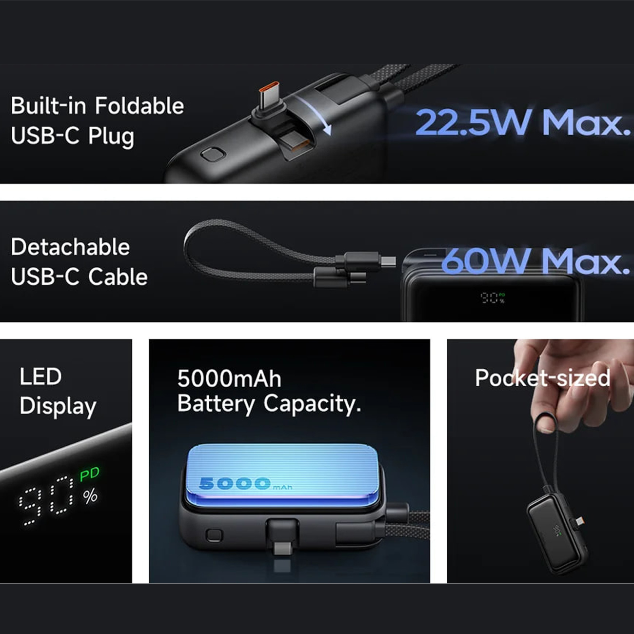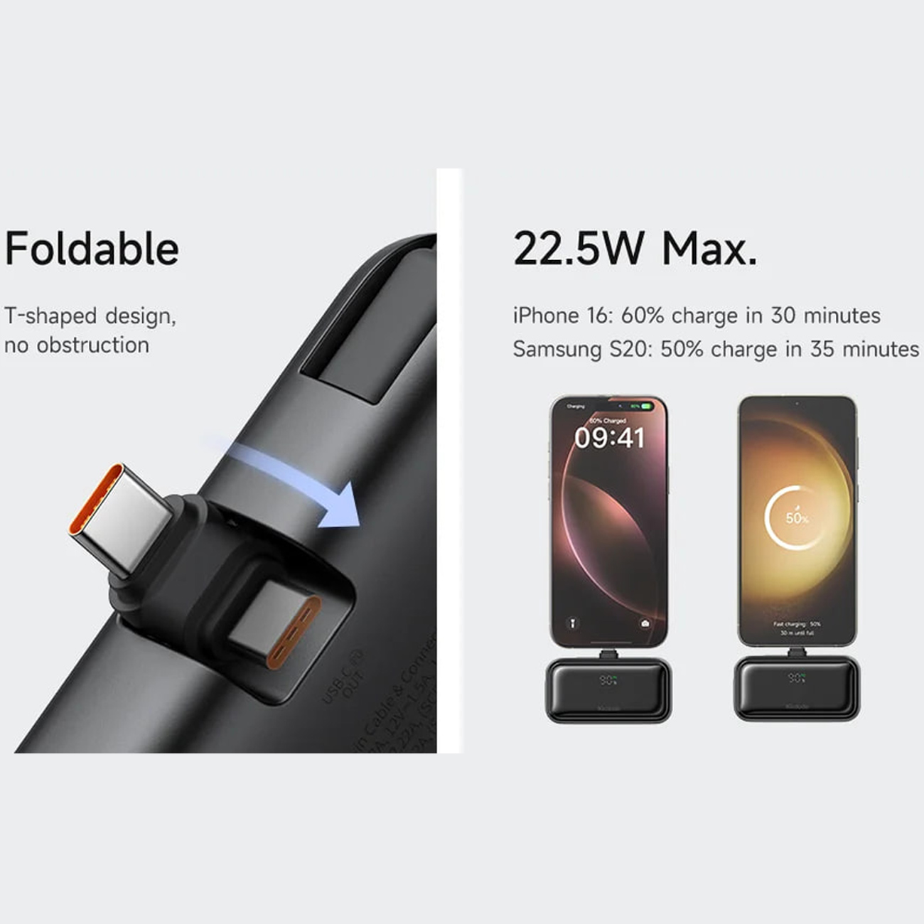 | امکانات و قابلیتها | شارژ سریع PD، کابل داخلی USB-C قابل جدا شدن، کانکتور USB-C تاشو، قابلیت استفاده همزمان به عنوان استند گوشی |
