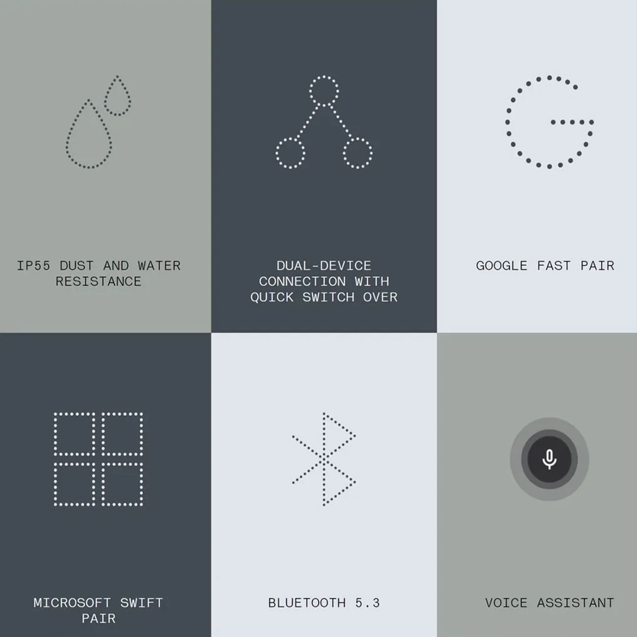 | سایر قابلیت ها | Google Fast Pair، Microsoft Swift Pair، اتصال همزمان به دو دستگاه |