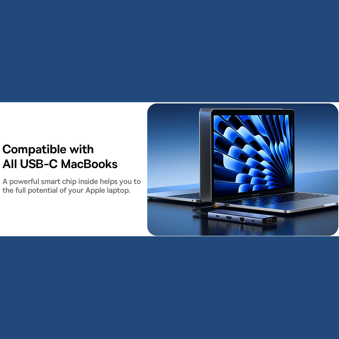 | پورتهای خروجی | HDMI 4K@30Hz / HDMI 4K@60Hz/USB-C 3.0 (5Gbps)/RJ45 Ethernet Port/USB-C PD Port/3.5mm Audio Jack/دوعددUSB-A 2.0 (480Mbps)/دوعددUSB-A 3.0 (5Gbps) |