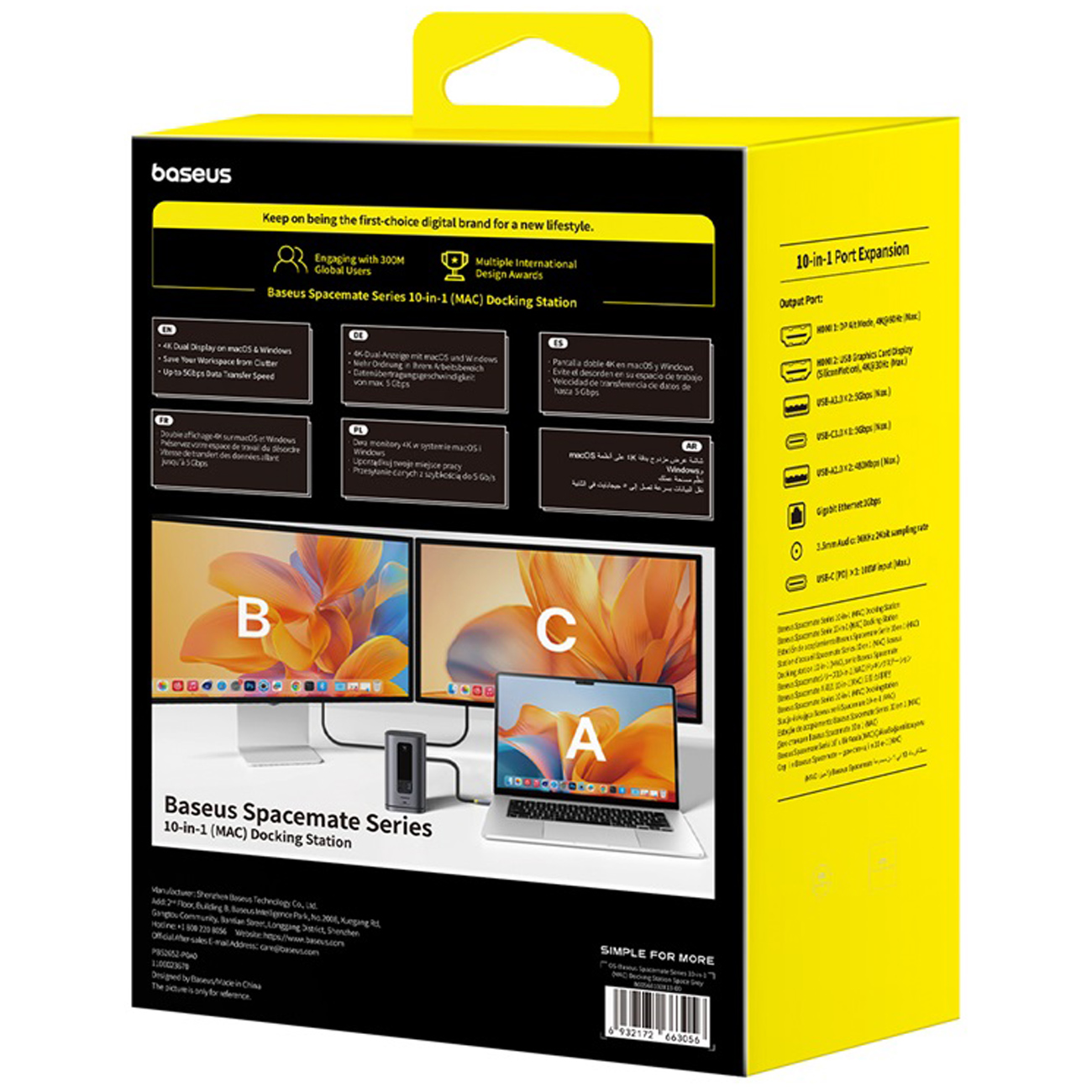 Baseus Spacemate Series 10-in-1 Dual Screen Docking Station (Windows, MacOS, Android, Chrome OS)