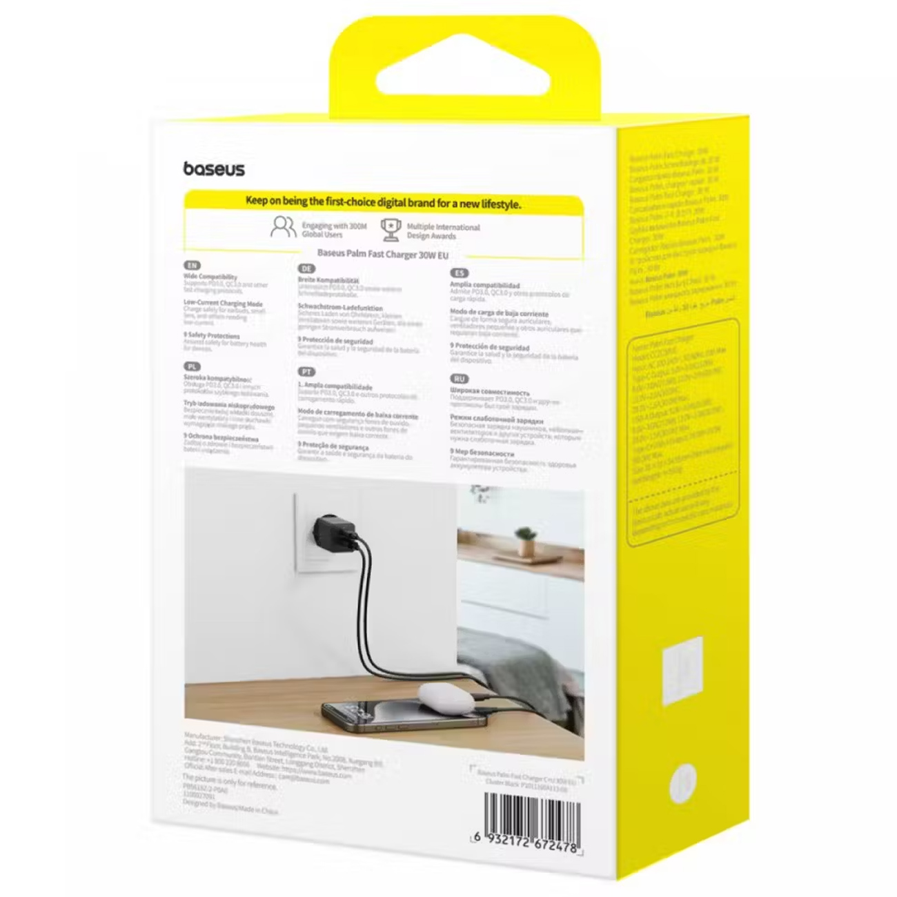 Baseus Palm Fast Charger verkkolaturi, 30W, 3A, 1 x USB-A - 1 x USB-C