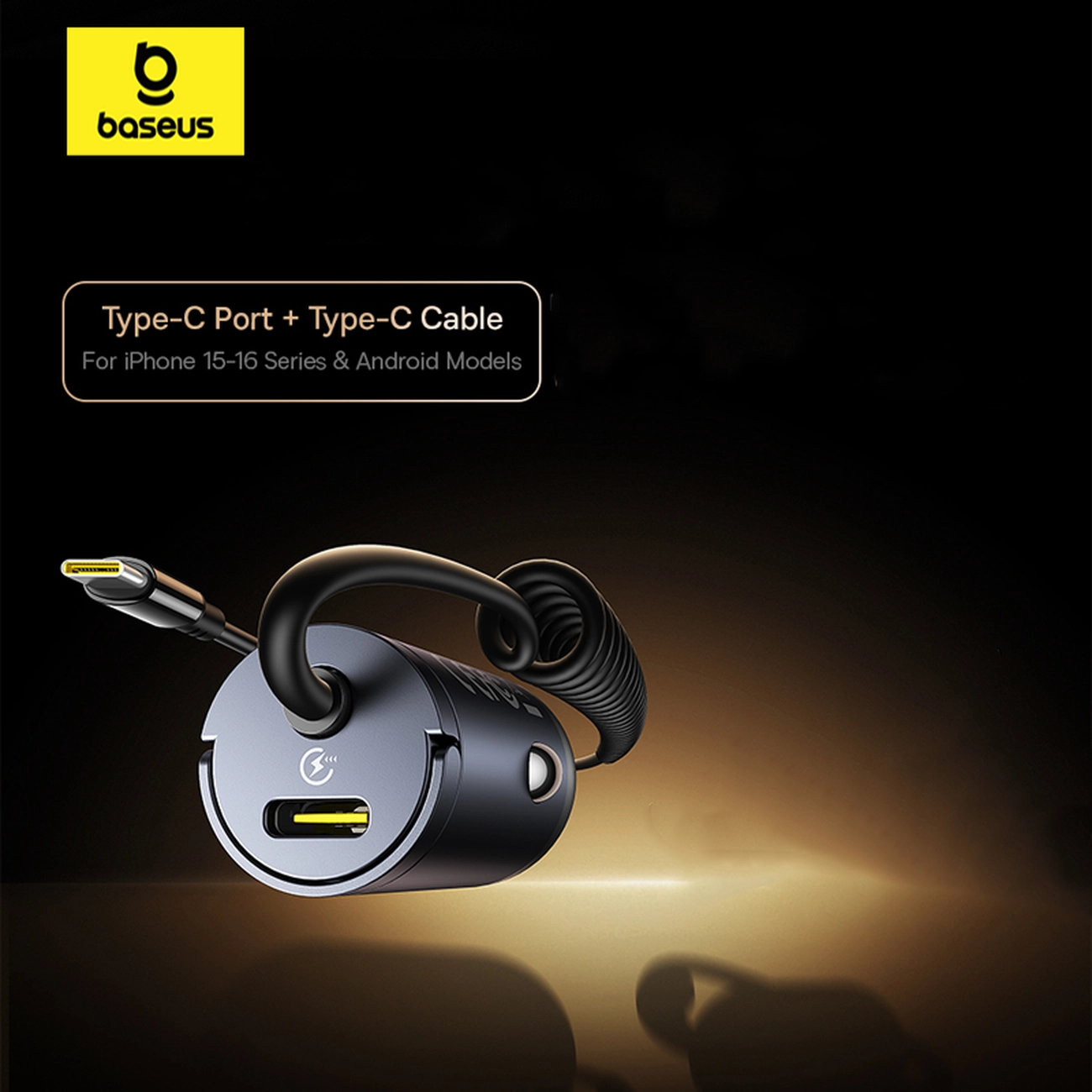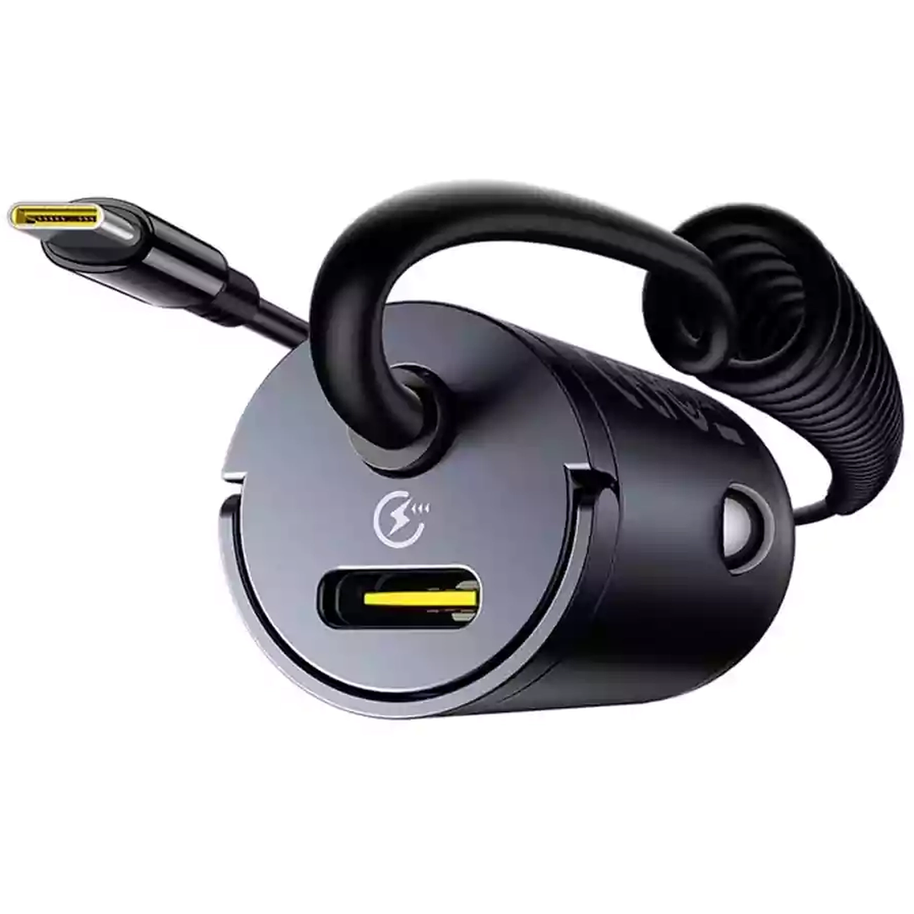 شارژر فندکی فست شارژ ماشین تایپسی 30 وات بیسوس Baseus VCHXX-C C C00035001121-00 با کابل فنری متصل تایپسی