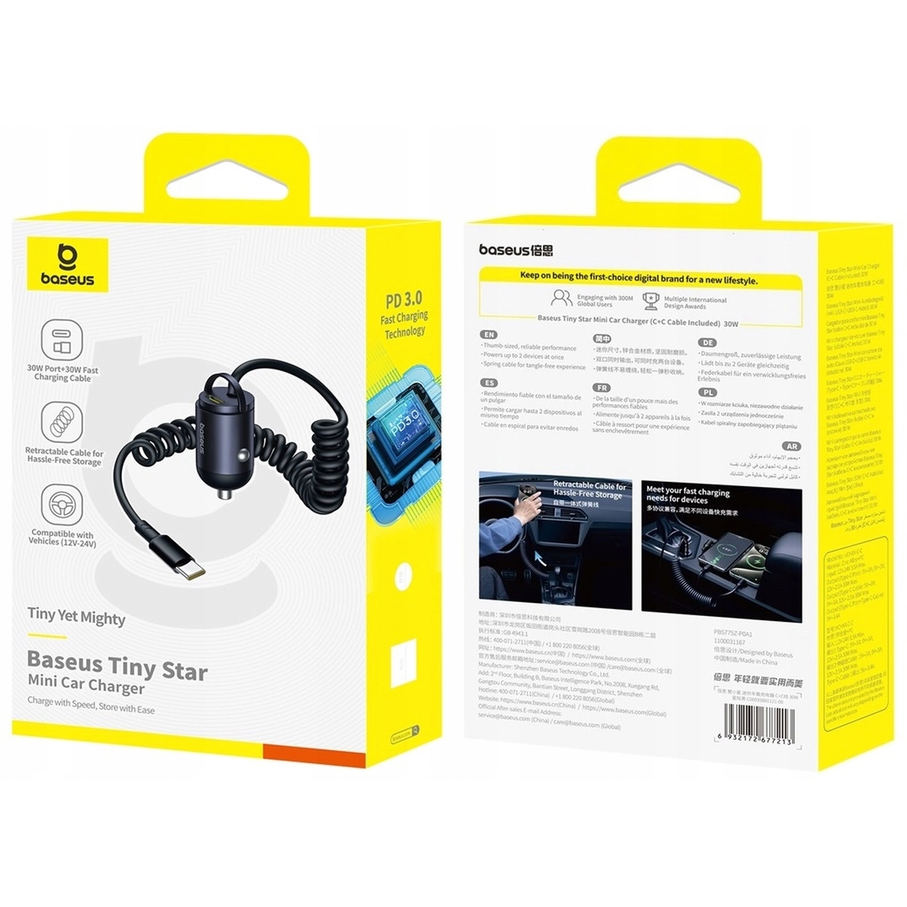 Baseus Tiny Star Mini Car Charger (C+C Cable Included) 30W VCHXX-C-C C00035001121-00