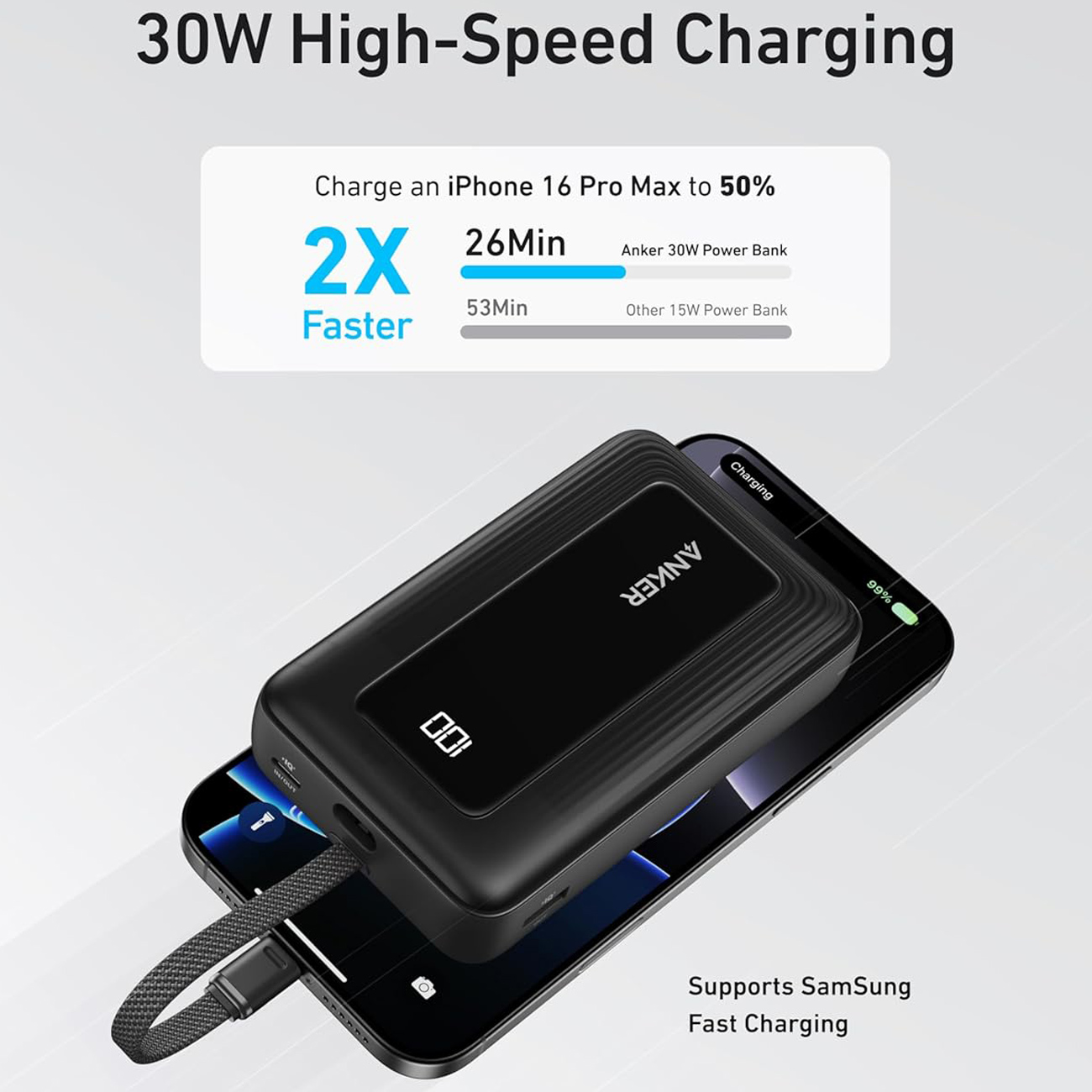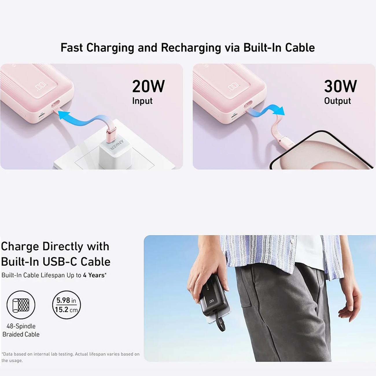 Anker Zolo 20000mAH Power Bank 30W (20K30W Build in USB-C Cable) A1689