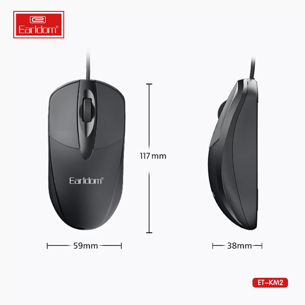 Mouse wired Earldom ET-KM2 computer for PC/laptop 1.2M classic Black