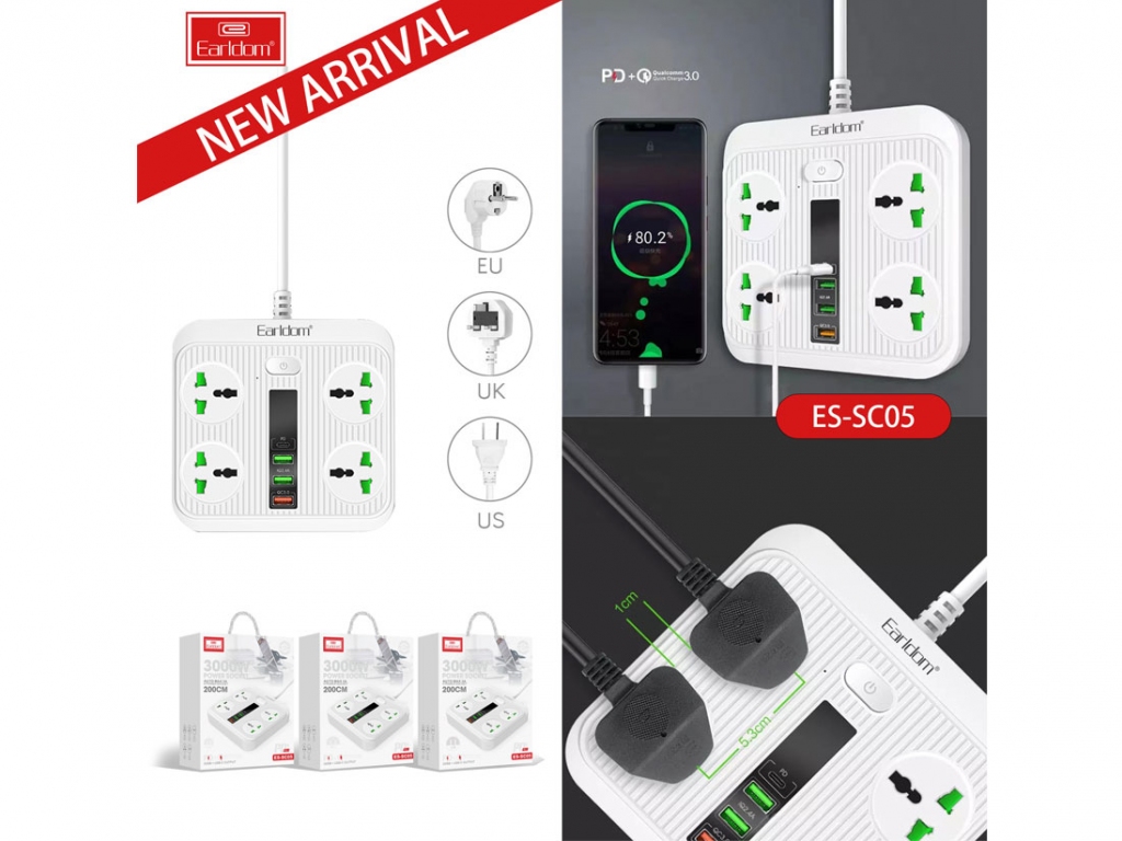 چندراهی هوشمند ارلدام Earldom Multiport Smart Power Outlet 3000W 5V/3A ES-SC05