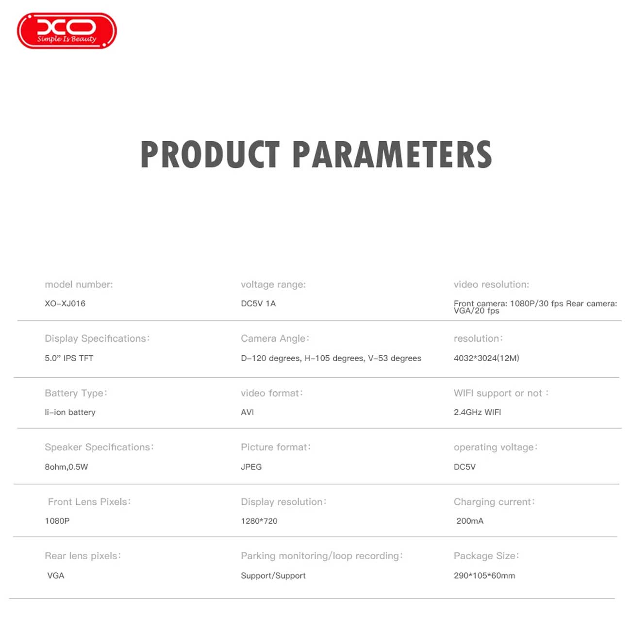دوربین ثبت وقایع خودرو 5 اینچی ایکس او XJ06