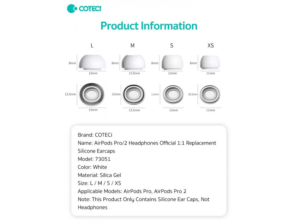 COTEetCI Silicone Ear Tips Pods Pro/2 73051