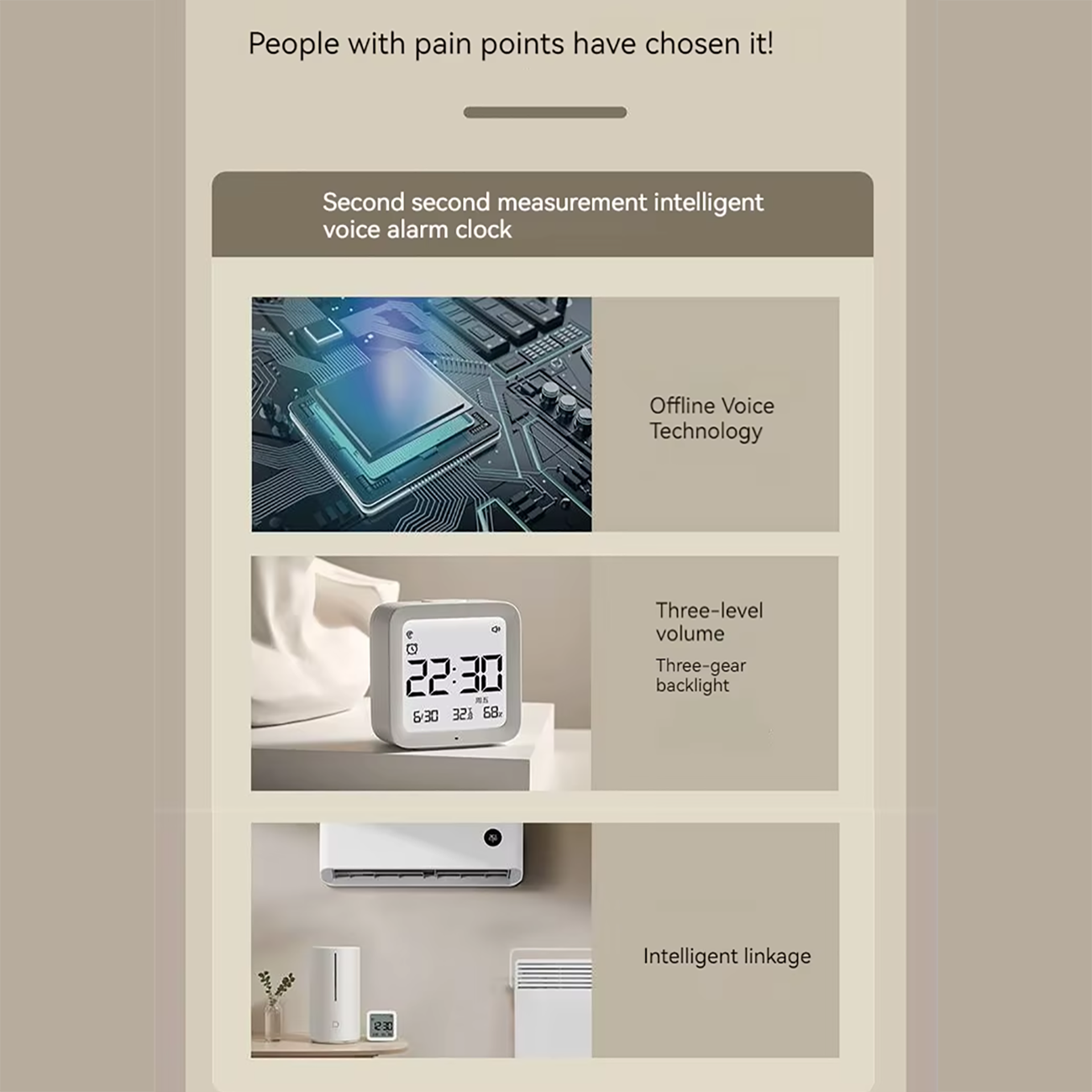 ساعت زنگدار صوتی هوشمند، دماسنج و رطوبت سنج شیائومی MHO-A301 (نسخه چین)
