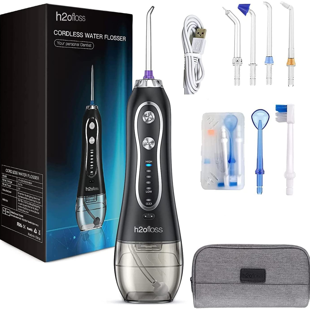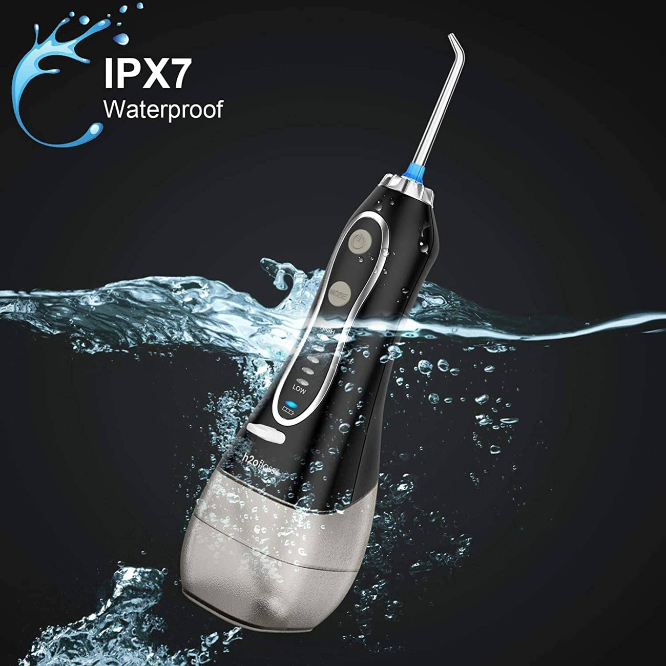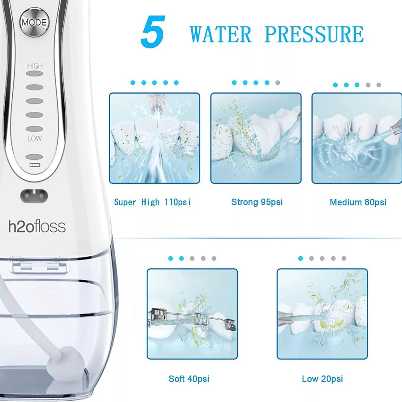 H2Ofloss Portable Oral Irrigator Flosser 5 Cleaning Modes & 6 Jet Tips, Ipx7 Waterproof 300Ml