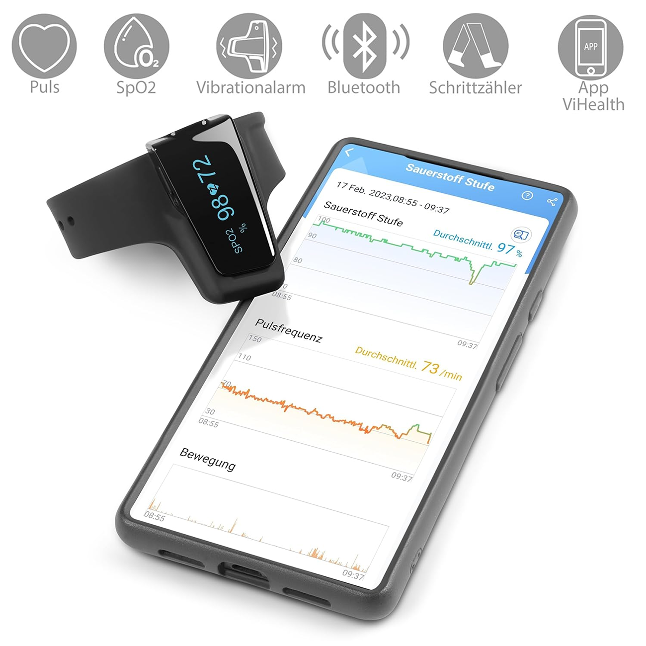 | اپلیکیشن سازگار | ViHealth (نمایش گزارش کامل، نمودارها و تحلیل دادهها) |