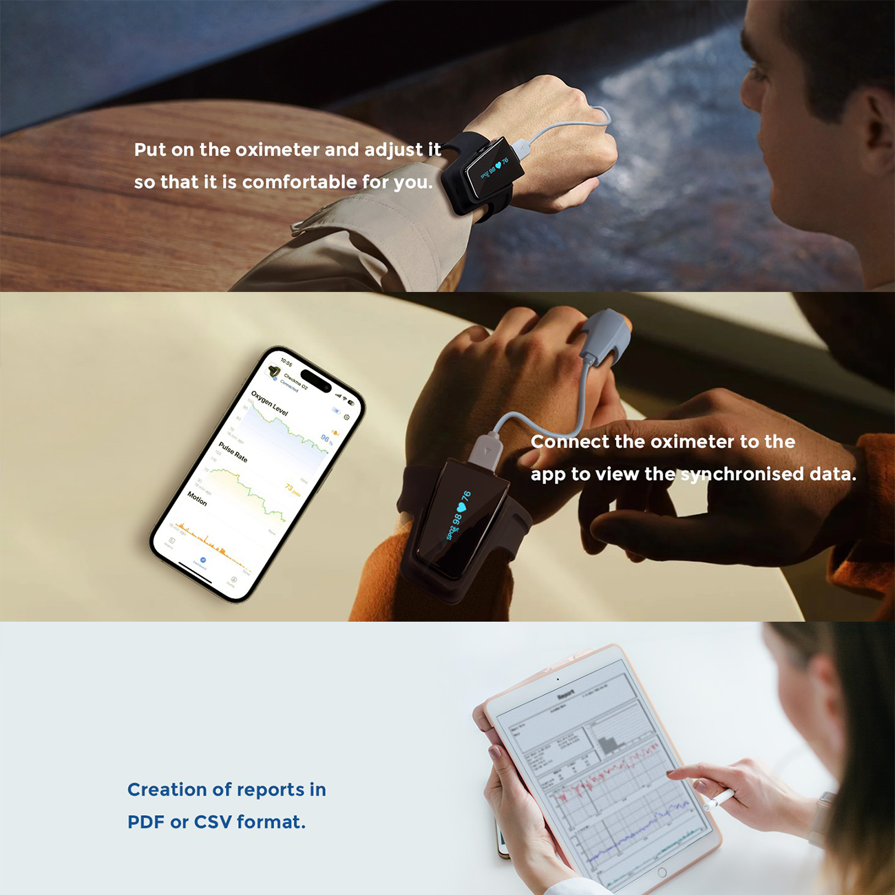 | کاربرد اصلی | نظارت بر اکسیژن خون (SpO2)، ضربان قلب (PR) و تشخیص آپنه خواب |