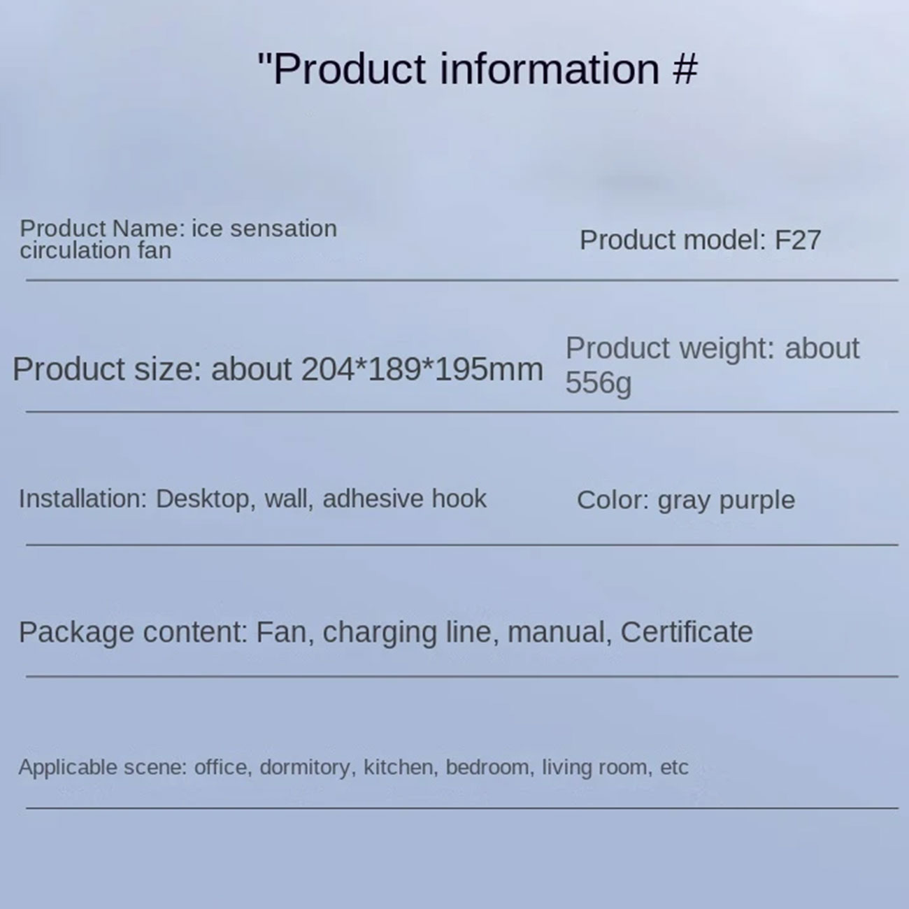| اقلام همراه | کابل شارژ، دفترچه راهنما، پنکه F27 |