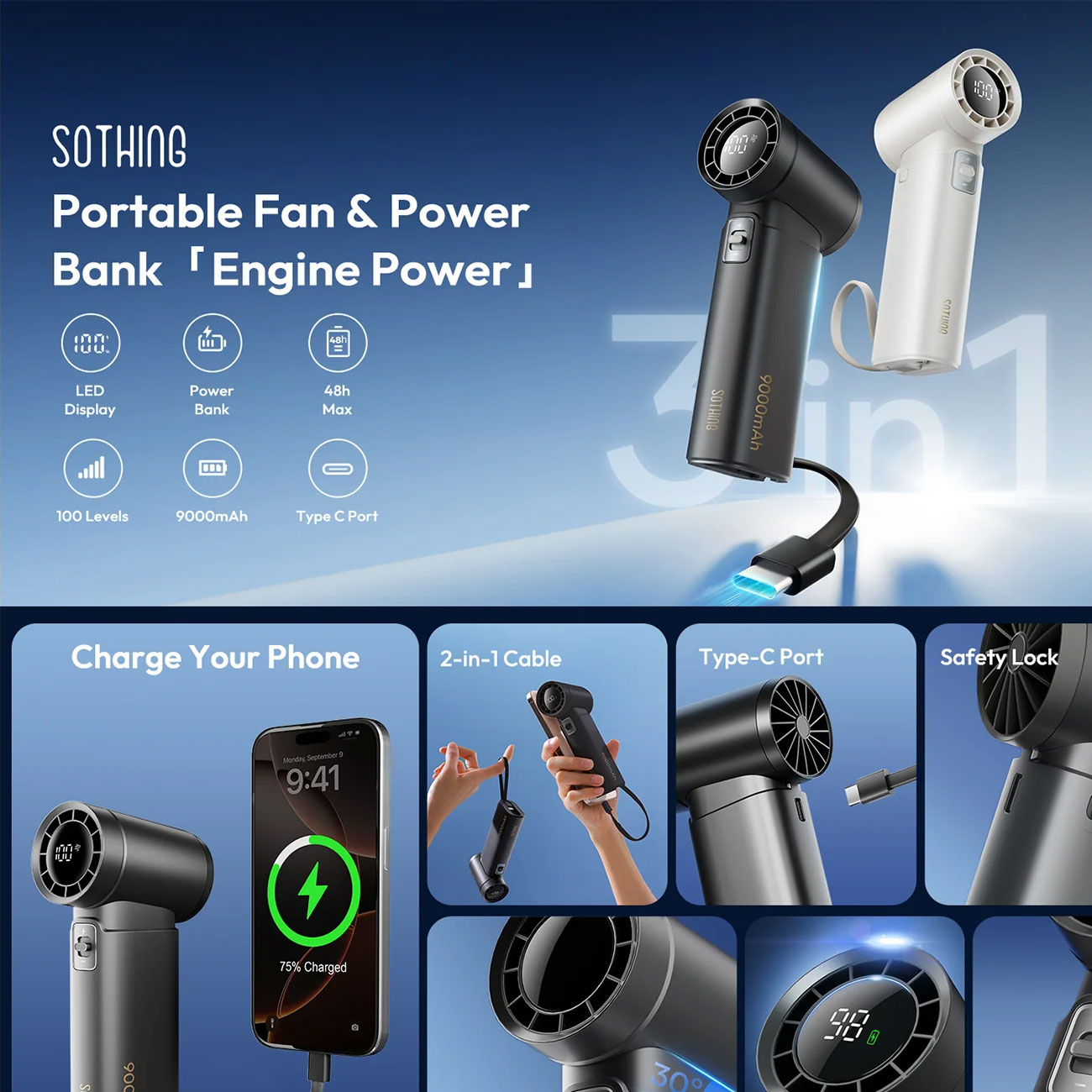 Sothing Xiangwu Mobile Power Bank Handheld Fan-Engine Power-2025--2424