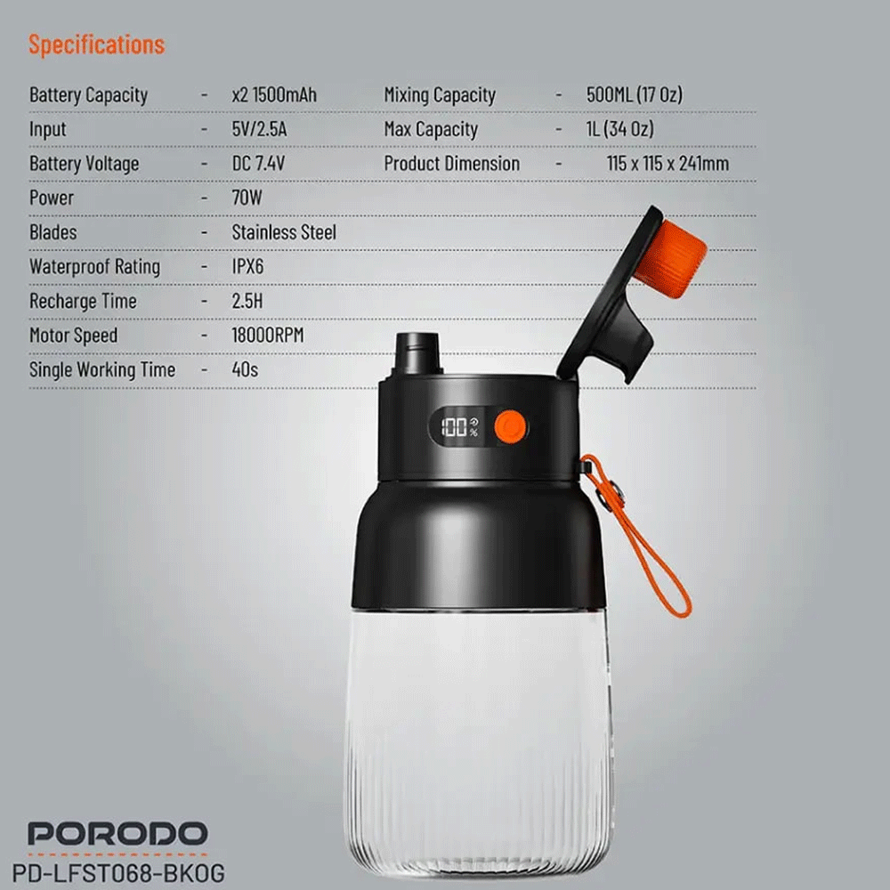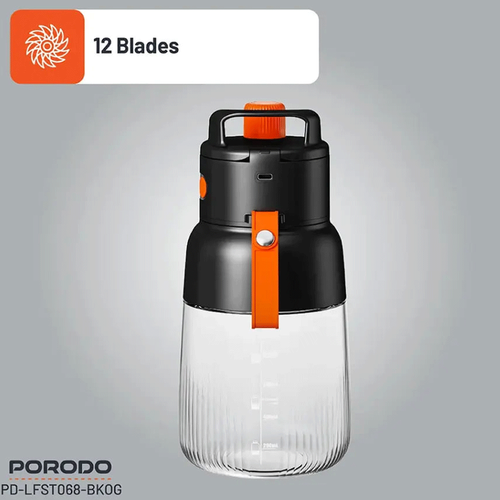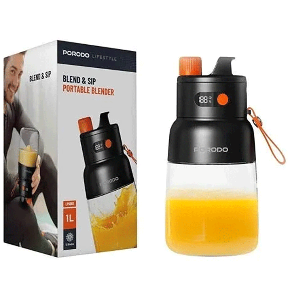 Porodo PD-LFST068-BK0G Lifestyle Blend & Sip Portable Blender - Black/Orange