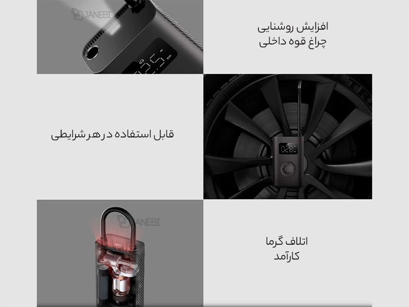 | محتویات جعبه | پمپ باد شیائومی، 3 نازل باد و یک کیف حمل و نقل |